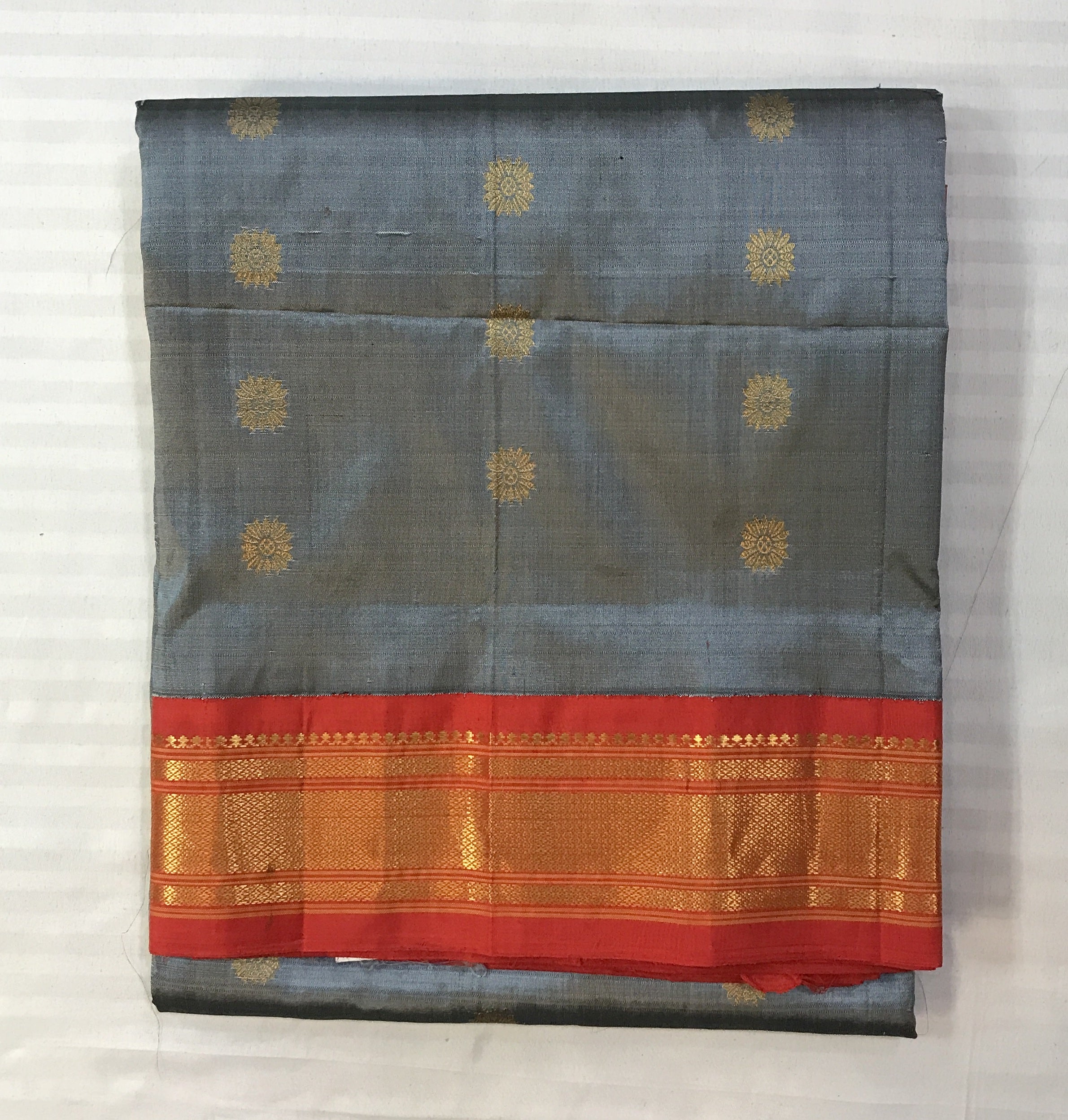 Blouse: Self ( Grey with golden zari border)