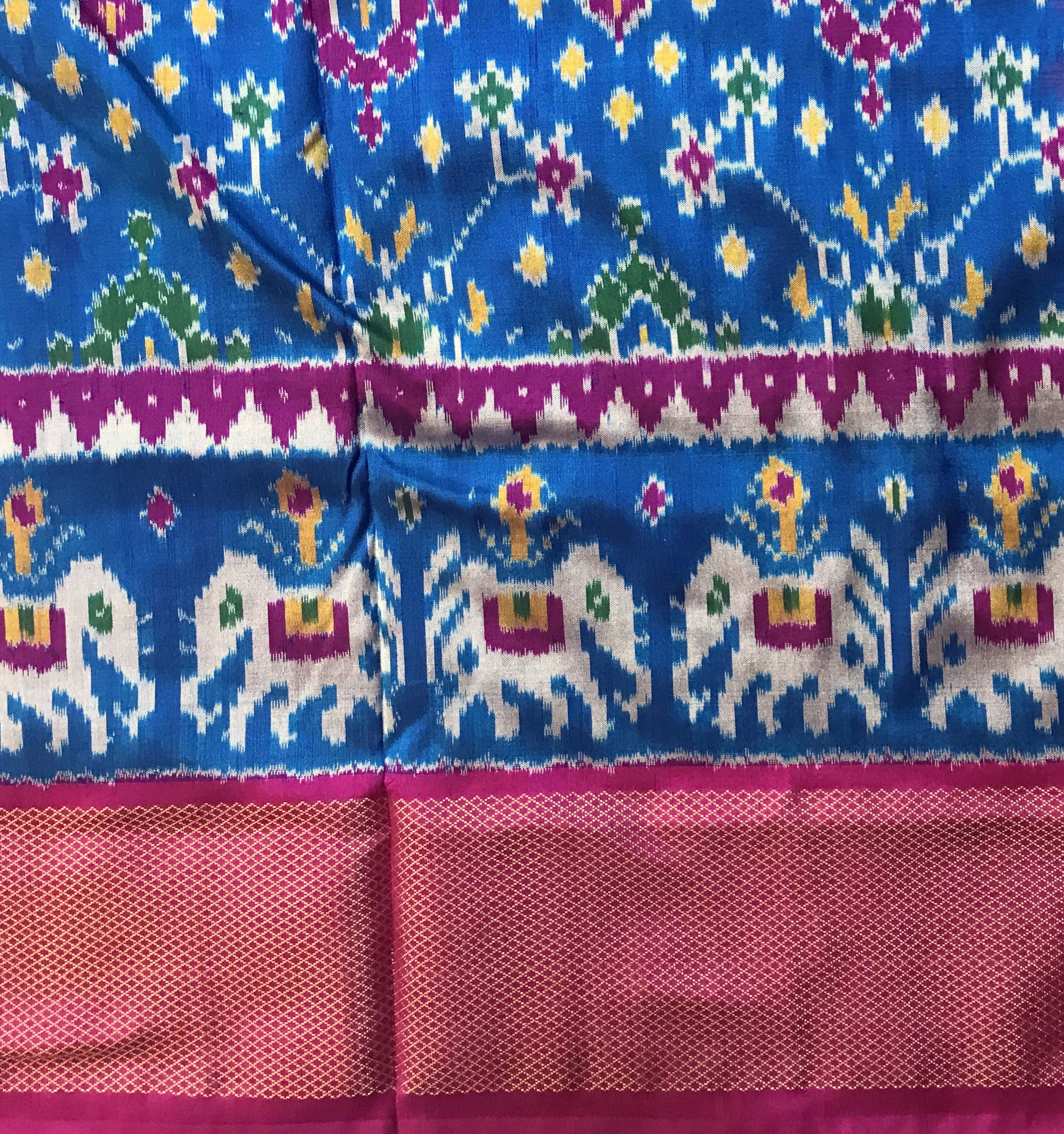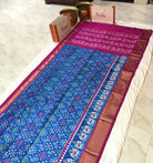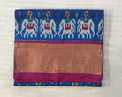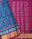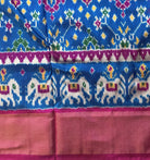 This refined blue handwoven ikkat saree features intricate ikkat patterns highlighted by a vibrant pink border, capturing the classic allure distinctive to traditional ikkats. A must-have for saree enthusiasts who appreciate truly unique and captivating designs.