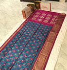 This refined blue handwoven ikkat saree features ikkat design highlighted by a vibrant pink border, capturing the classic allure distinctive to traditional ikkats. A must-have for saree enthusiasts who appreciate truly unique and captivating designs.