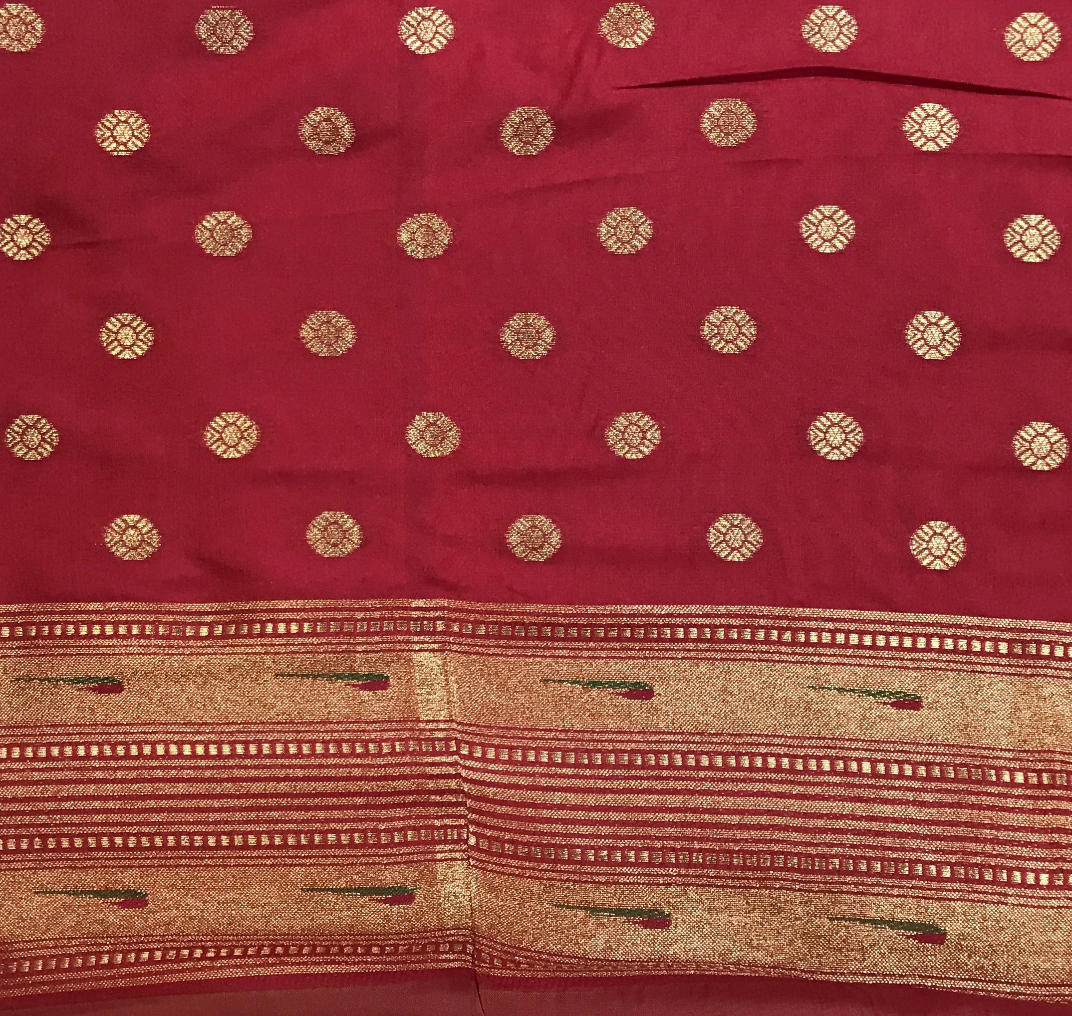 Blouse Colour: Contrast ( Red with butti with muniya zari border)