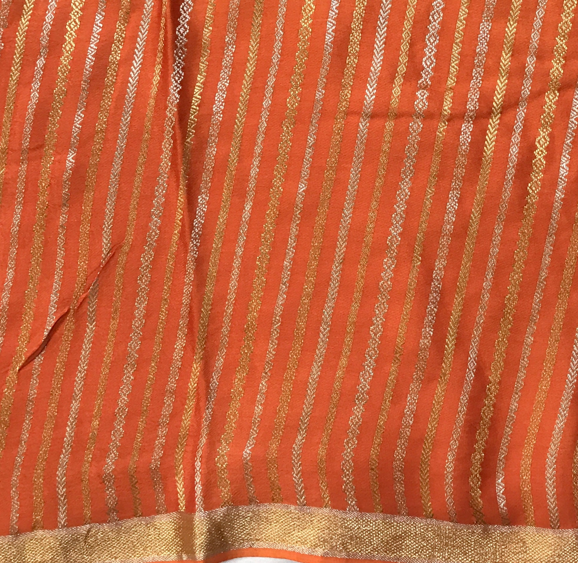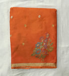 Turn heads in this stunning Silk Banarasi Saree drenched in a vibrant burnt orange hue that radiates festive warmth and timeless charm. The body is gracefully adorned with delicate gold zari butis, adding a subtle shimmer against the rich silk base.The saree is elevated with a beautifully woven gold zari border and pallu, featuring intricate traditional jaal patterns that reflect the finesse of Banarasi craftsmanship. Adding a contemporary twist, the elegant floral woven accents near the pleats lend a refreshing, modern appeal to this classic weave.