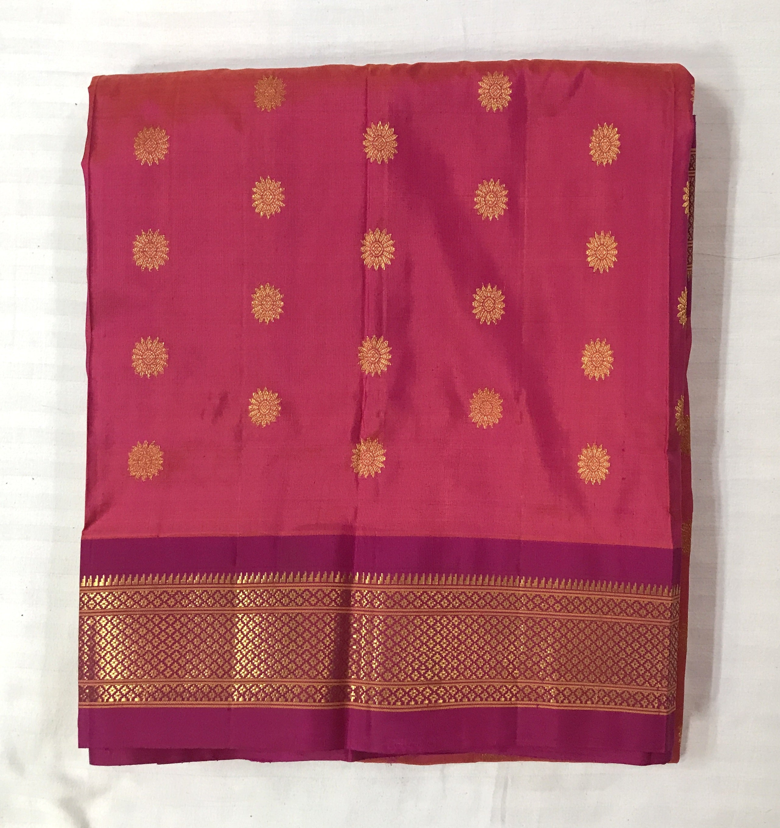 Blouse: Self ( Peach pink with magenta golden zari border)