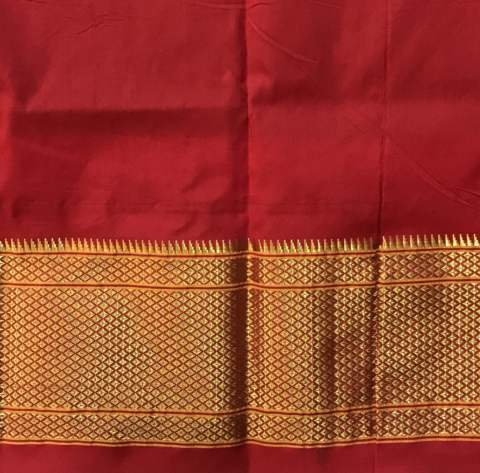 Blouse: Contrast ( Red with golden zari border )