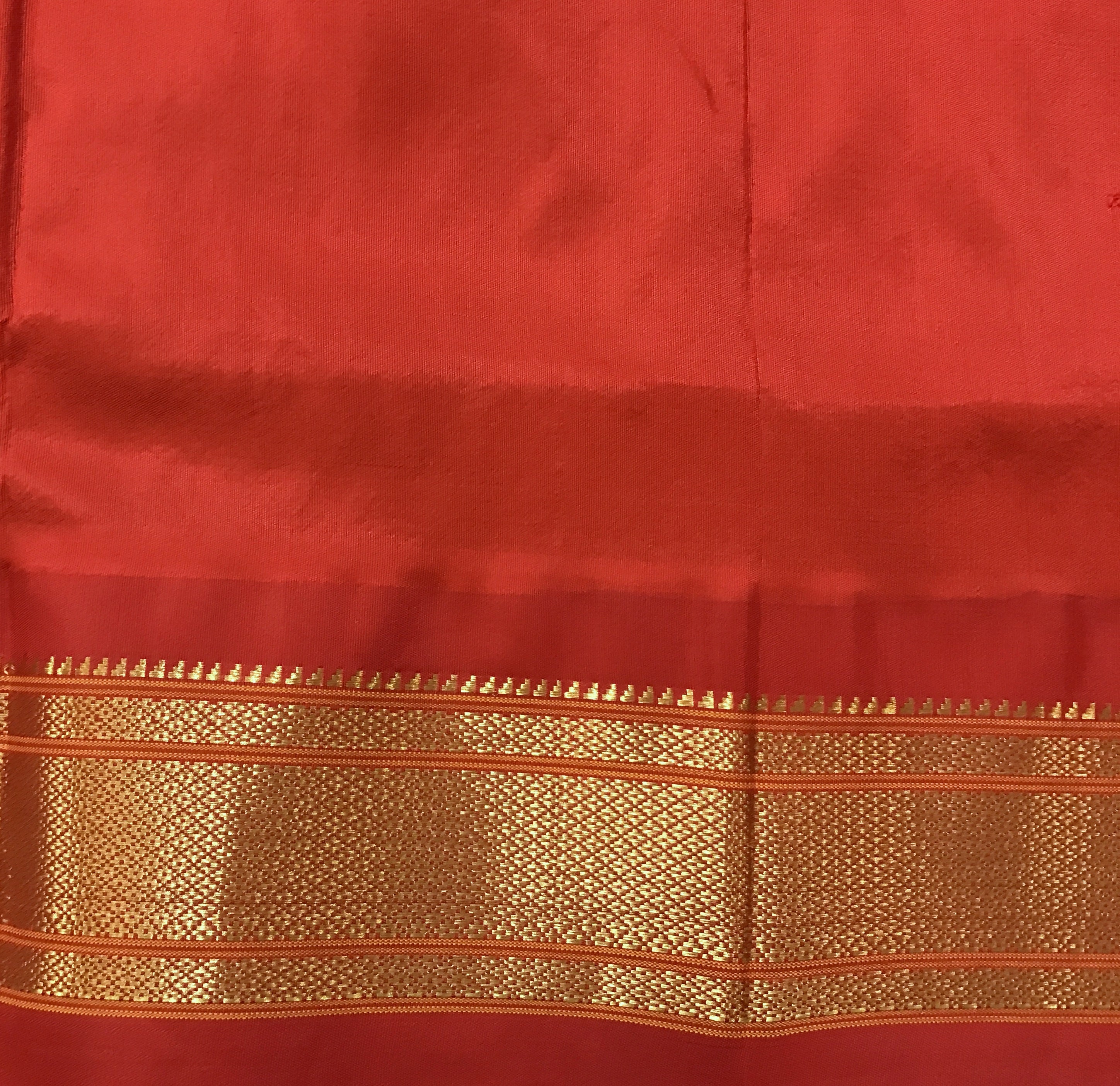 Blouse Colour: Contrast ( Red with golden zari boreder )