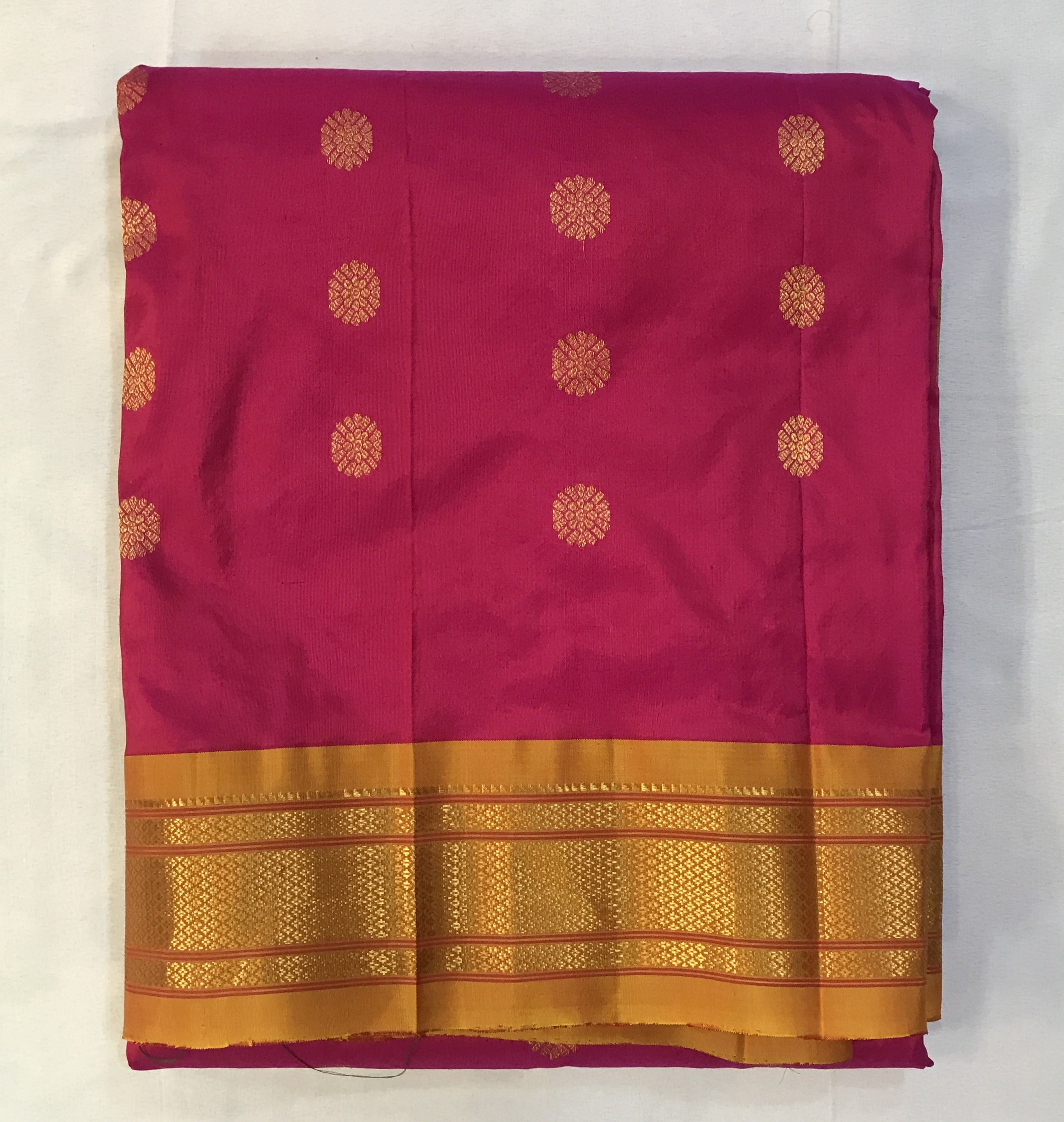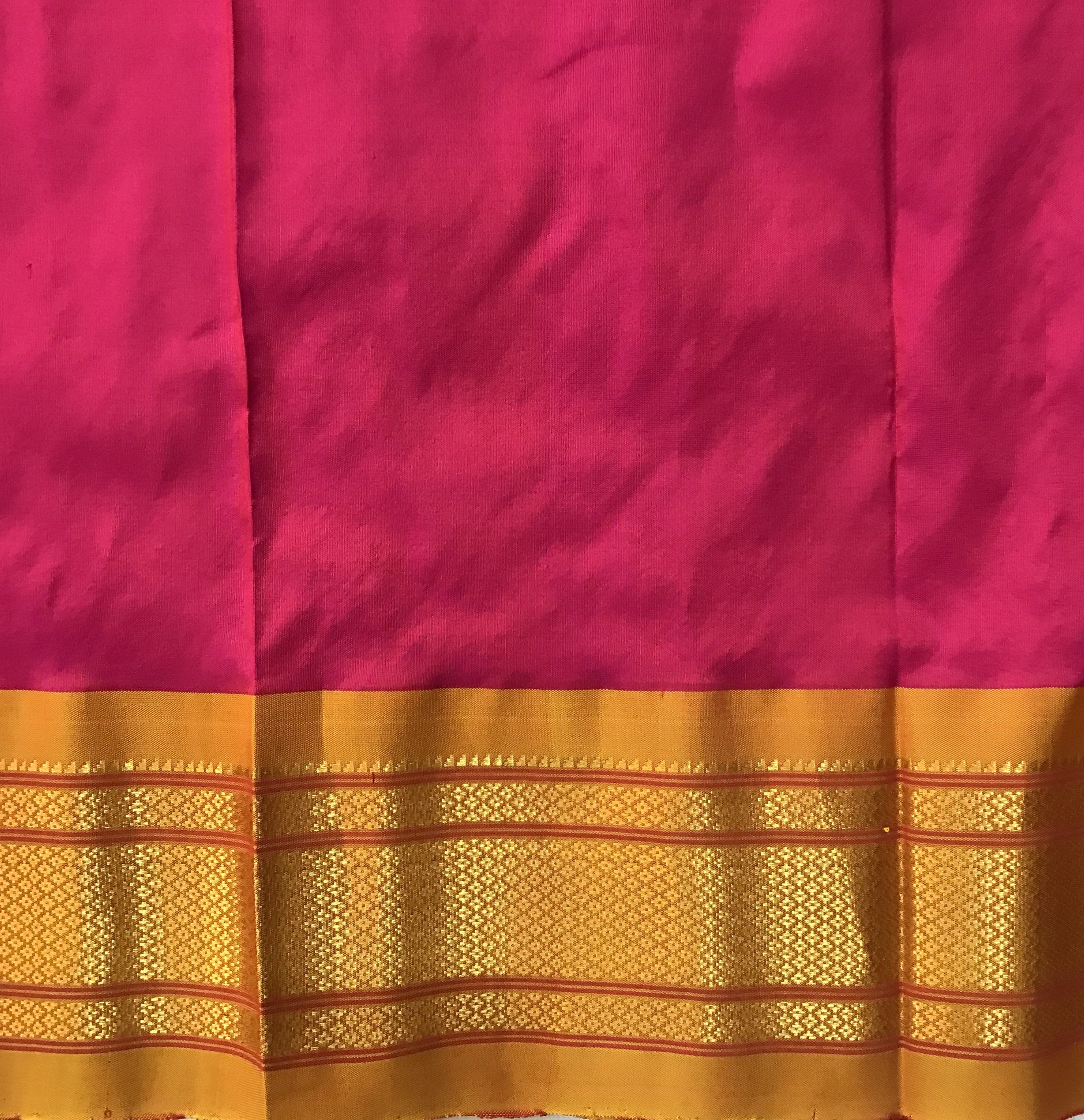 Blouse: Self ( Pink with mango yellow golden zari border)