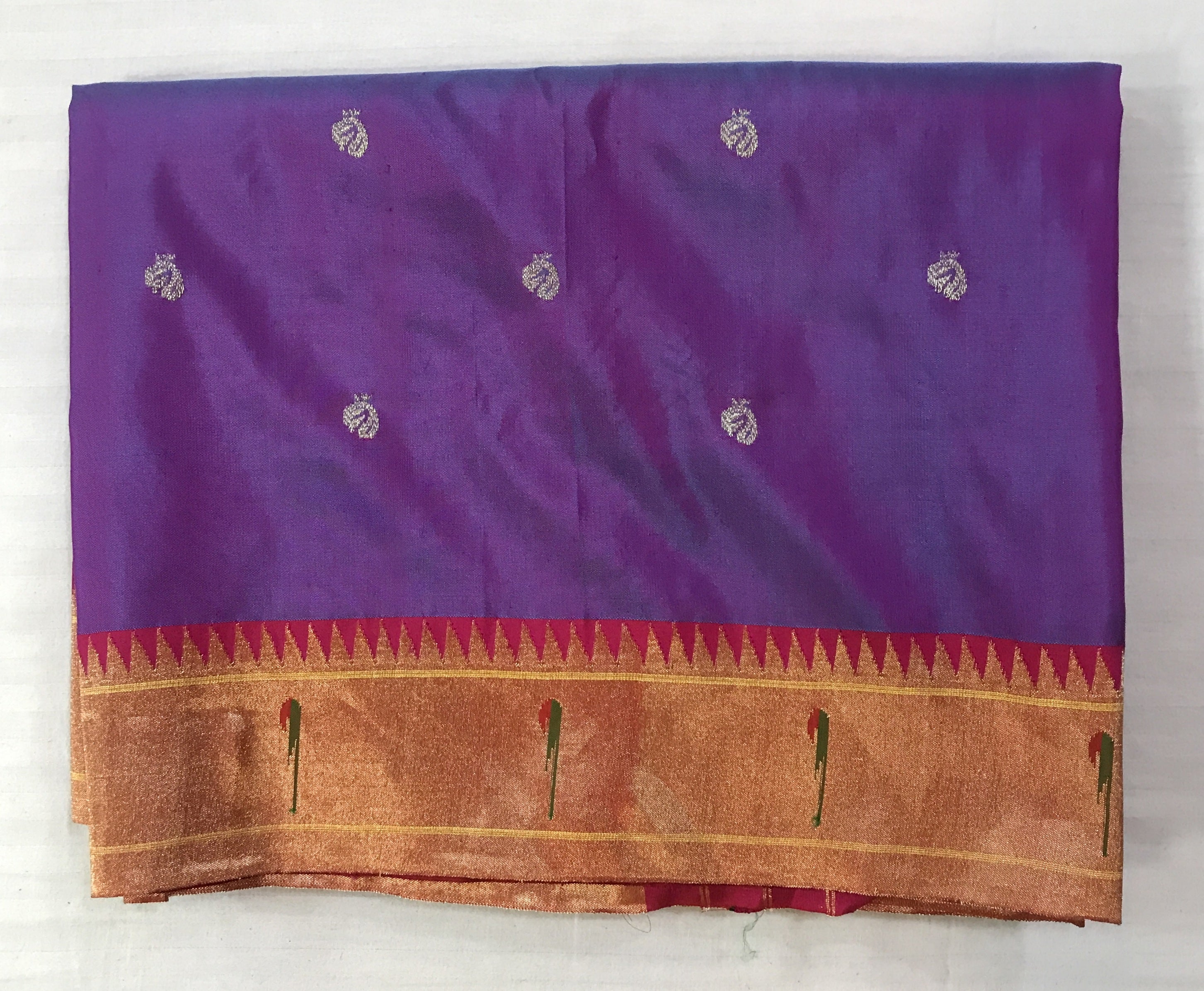 Blouse Colour: Self ( Purple with golden muniya zari border )