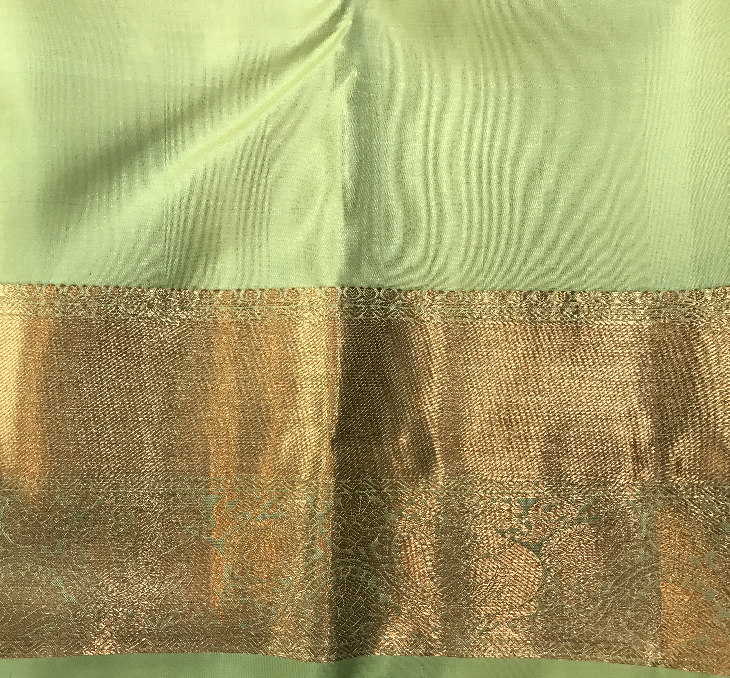 Blouse Colour: Self ( Green with broad zari border )