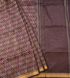 A soothing wine printed tussar silk saree in a printed design with a combination of all beautiful warm colours, this saree is a keepsake. The multi coloured pallu adds a quirk to the otherwise traditional. From a casual friends meet, to a brunch and from an office meeting to an evening party, this one is a perfect classy outfit for all!