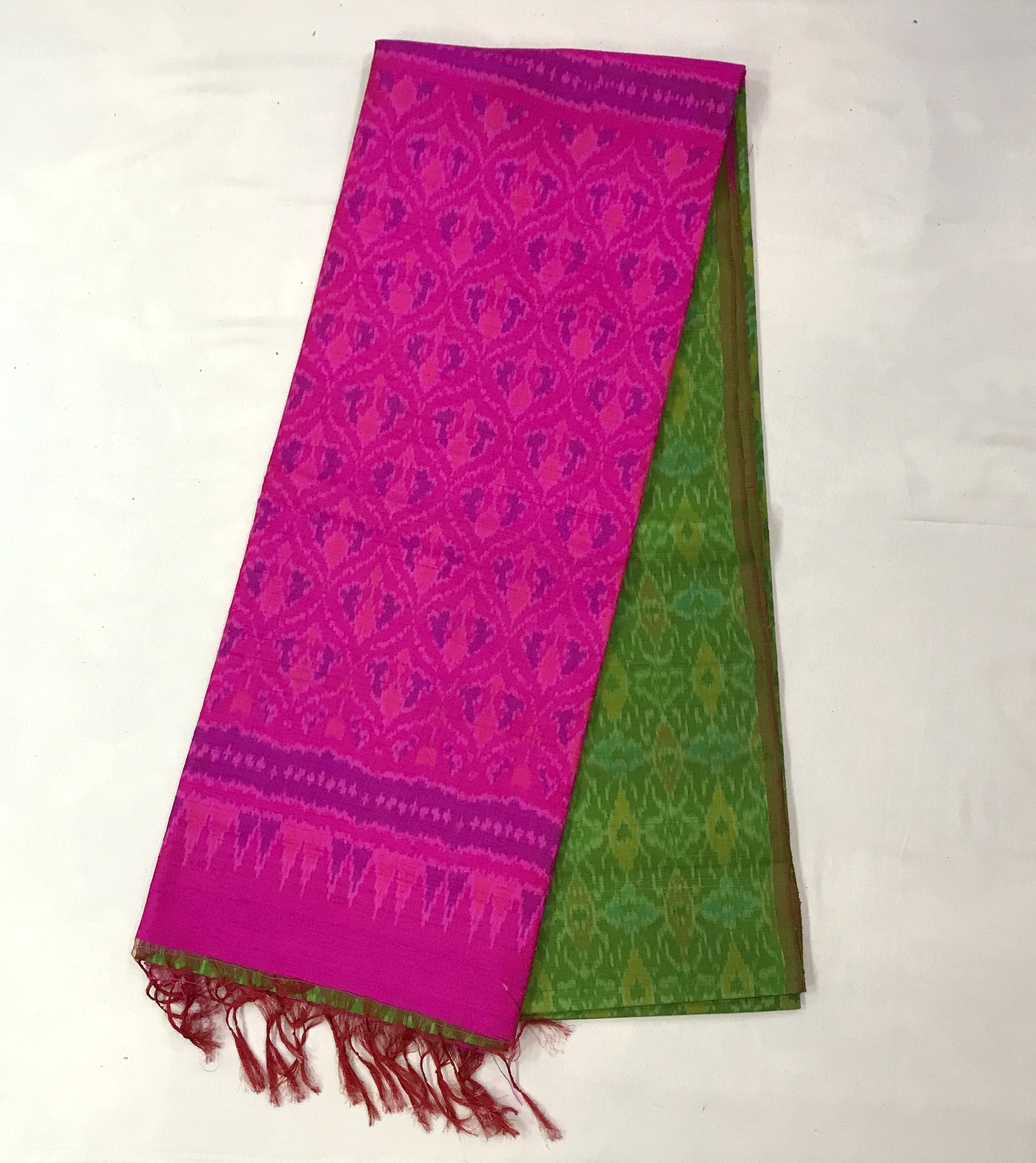 Blouse Colour: Contrast ( Pink with ikkat design and saree comes along with tassels )