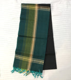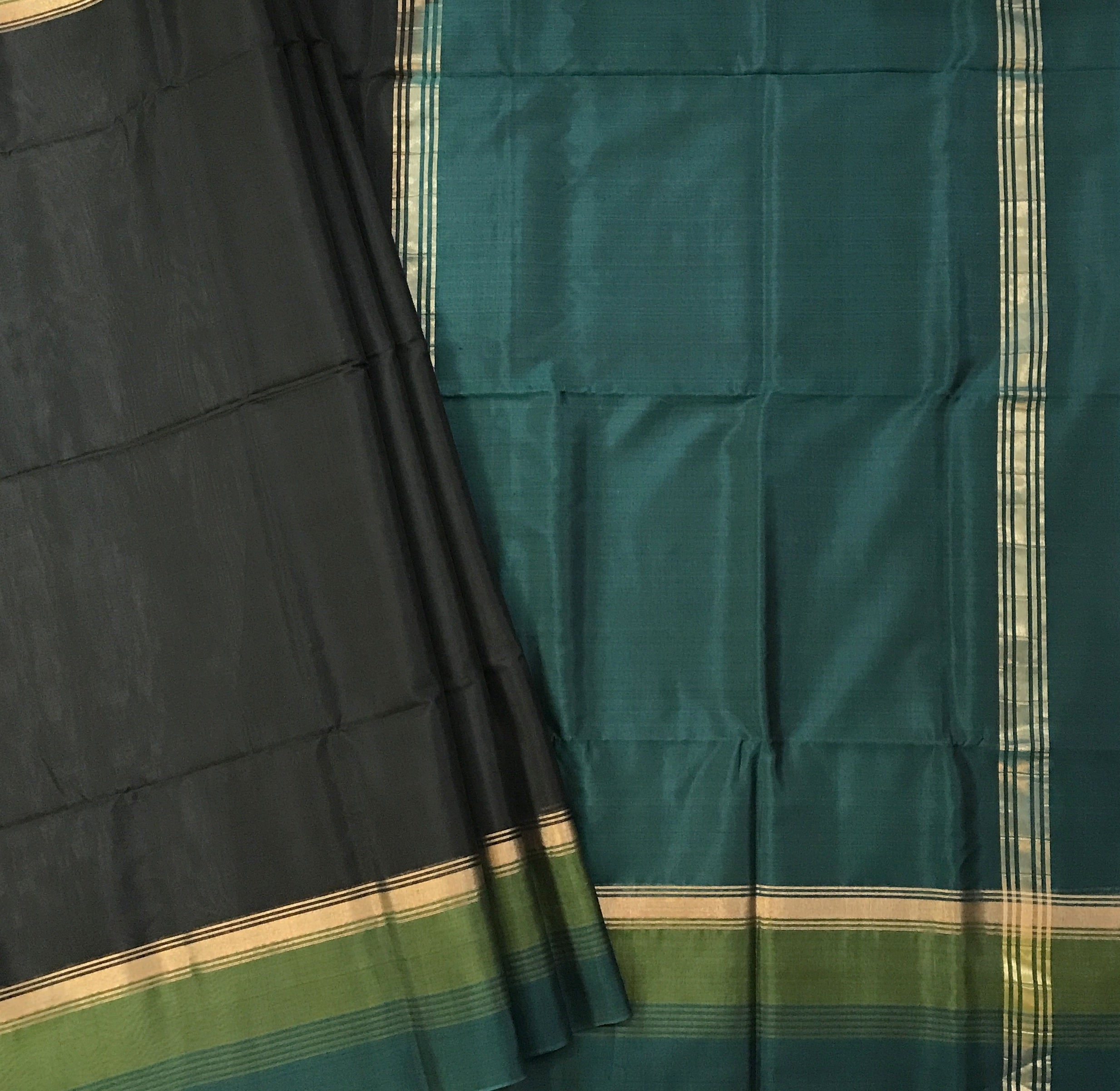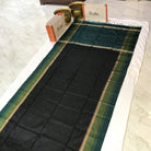 A very different type and beautiful combination of black coloured Silk Cotton Traditional saree , perfect saree for summers!  Don't miss the plain black coloured saree without motifs with plain green and turquoise golden zari border and contrast turquoise pallu is very outstanding. Light in weight and easy to drape.