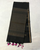 Blouse Colour: Self ( Plain black and saree comes along with tassels)