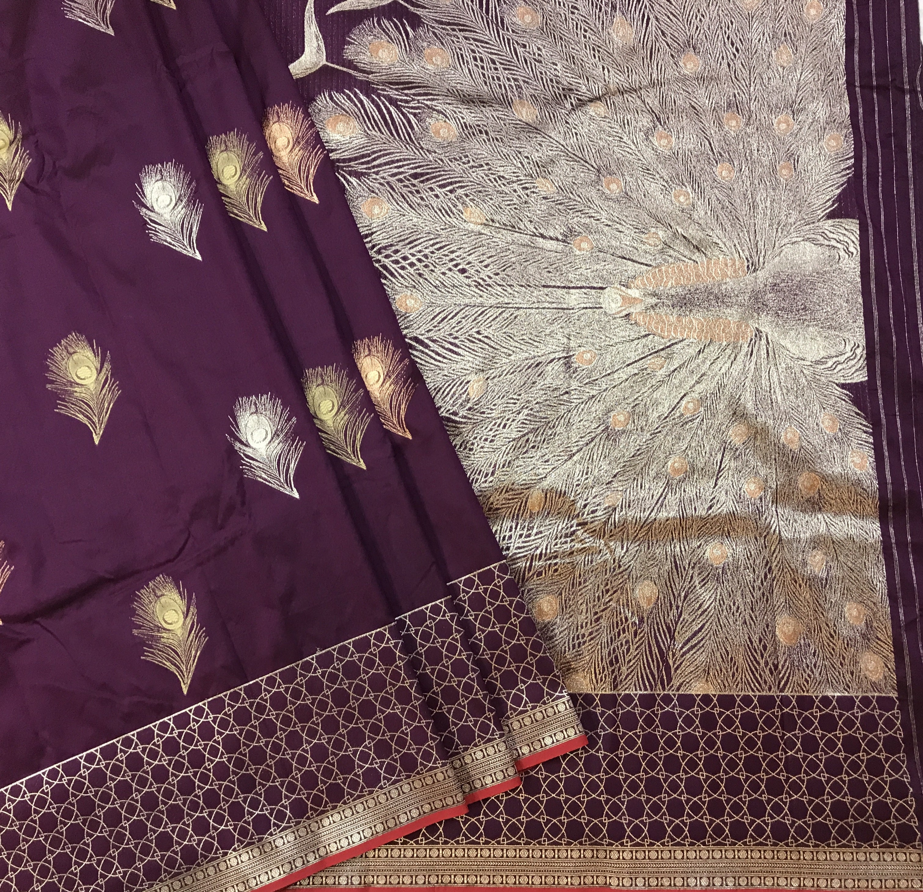 Blouse: Self (Magenta-wine colour with zari butta )