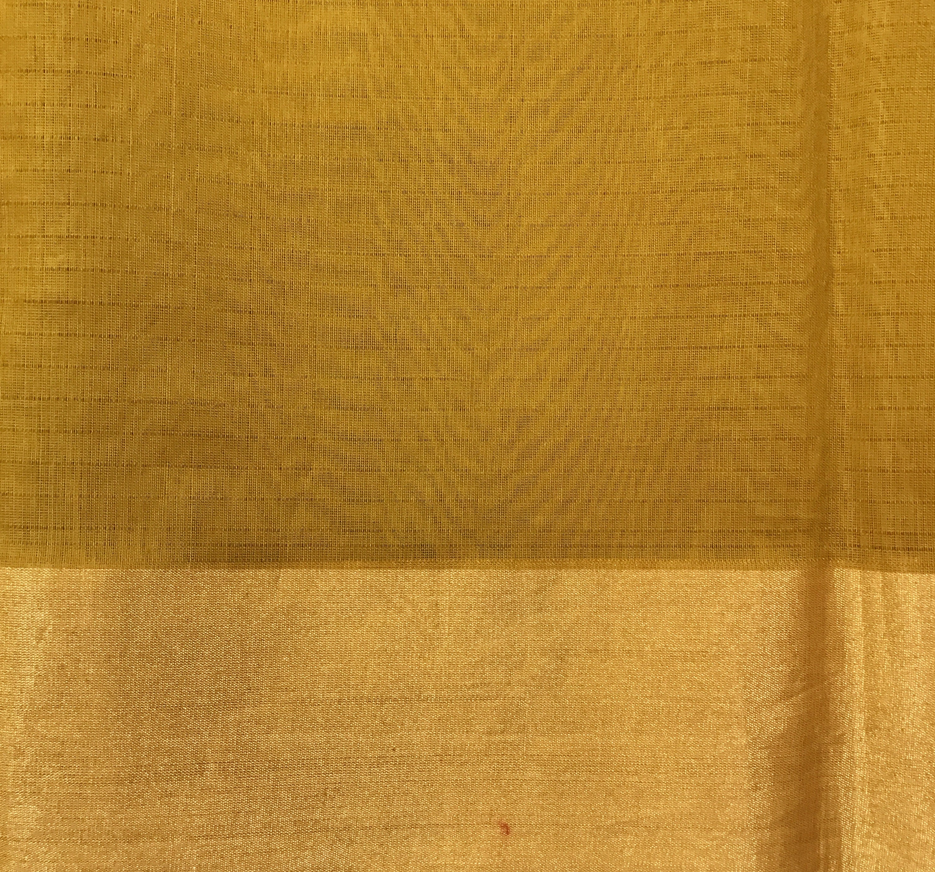 Blouse Colour: Contrast ( Mustard with golden zari border )