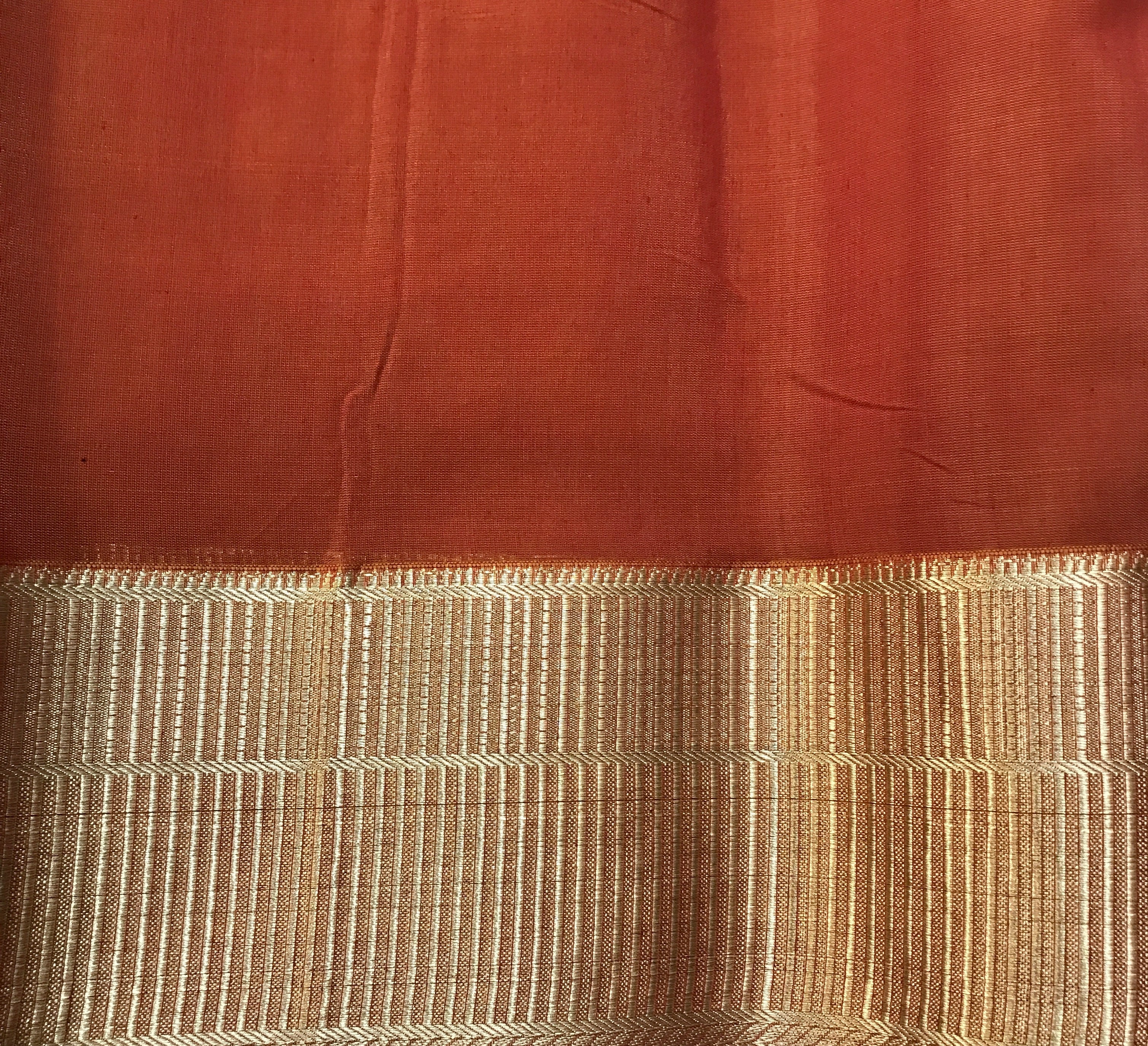 Blouse Colour: Contrast ( Orange with golden zari border )