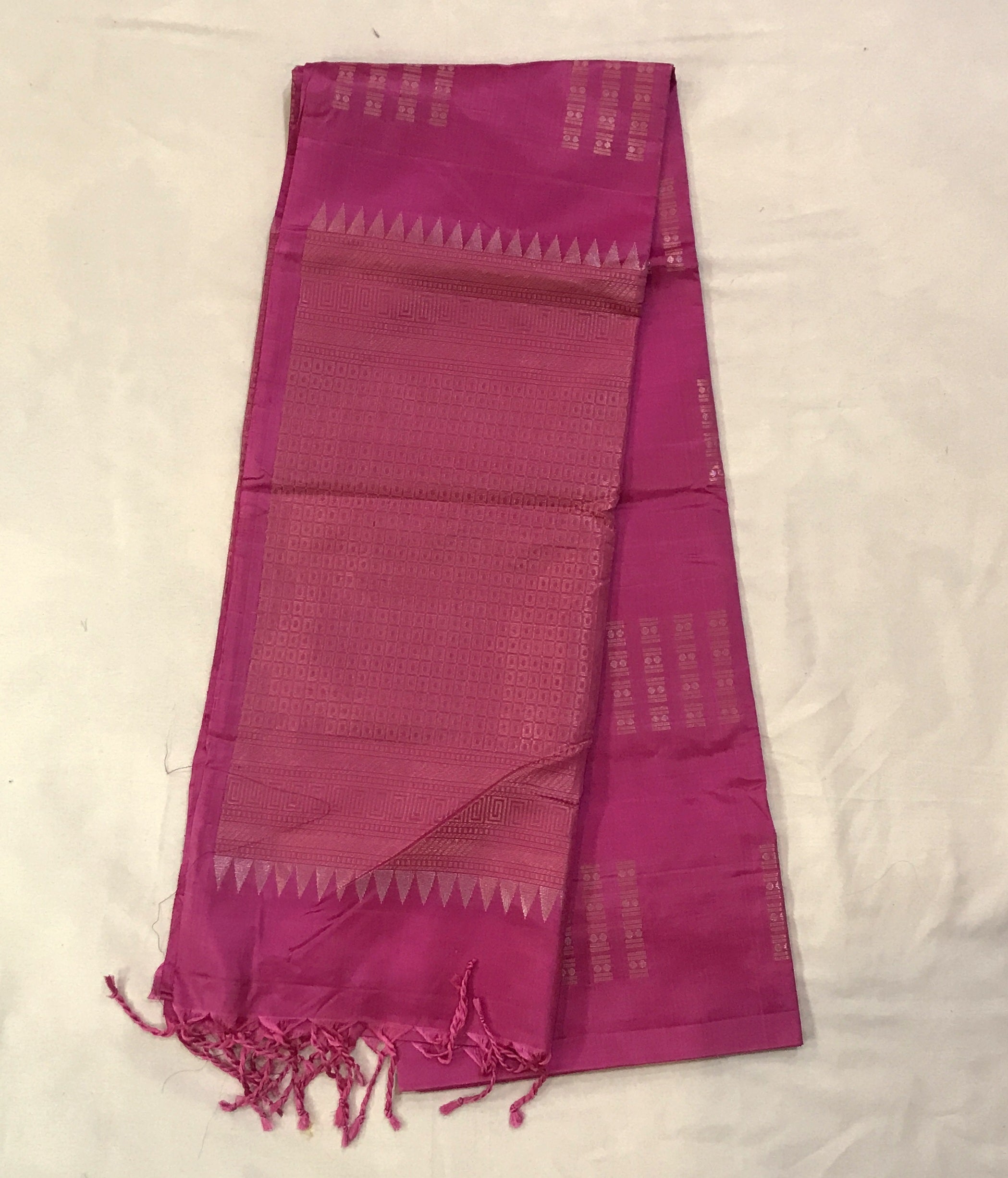 Blouse Colour: Self ( Plain pink and saree comes along with tassels )