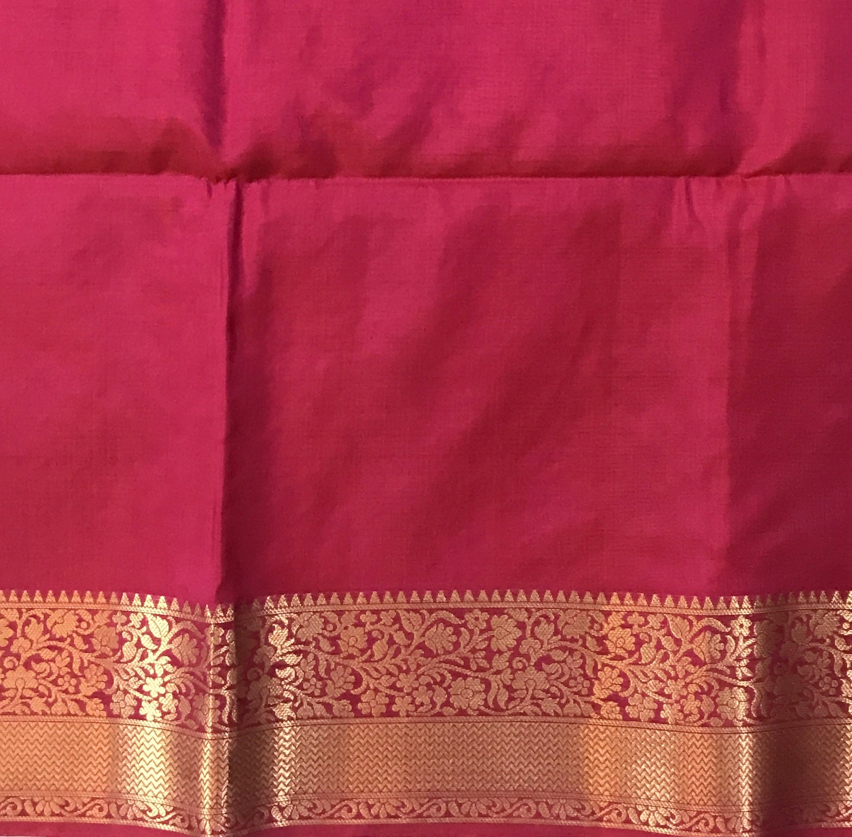 Blouse Colour: Contrast ( Pink with golden zari border )