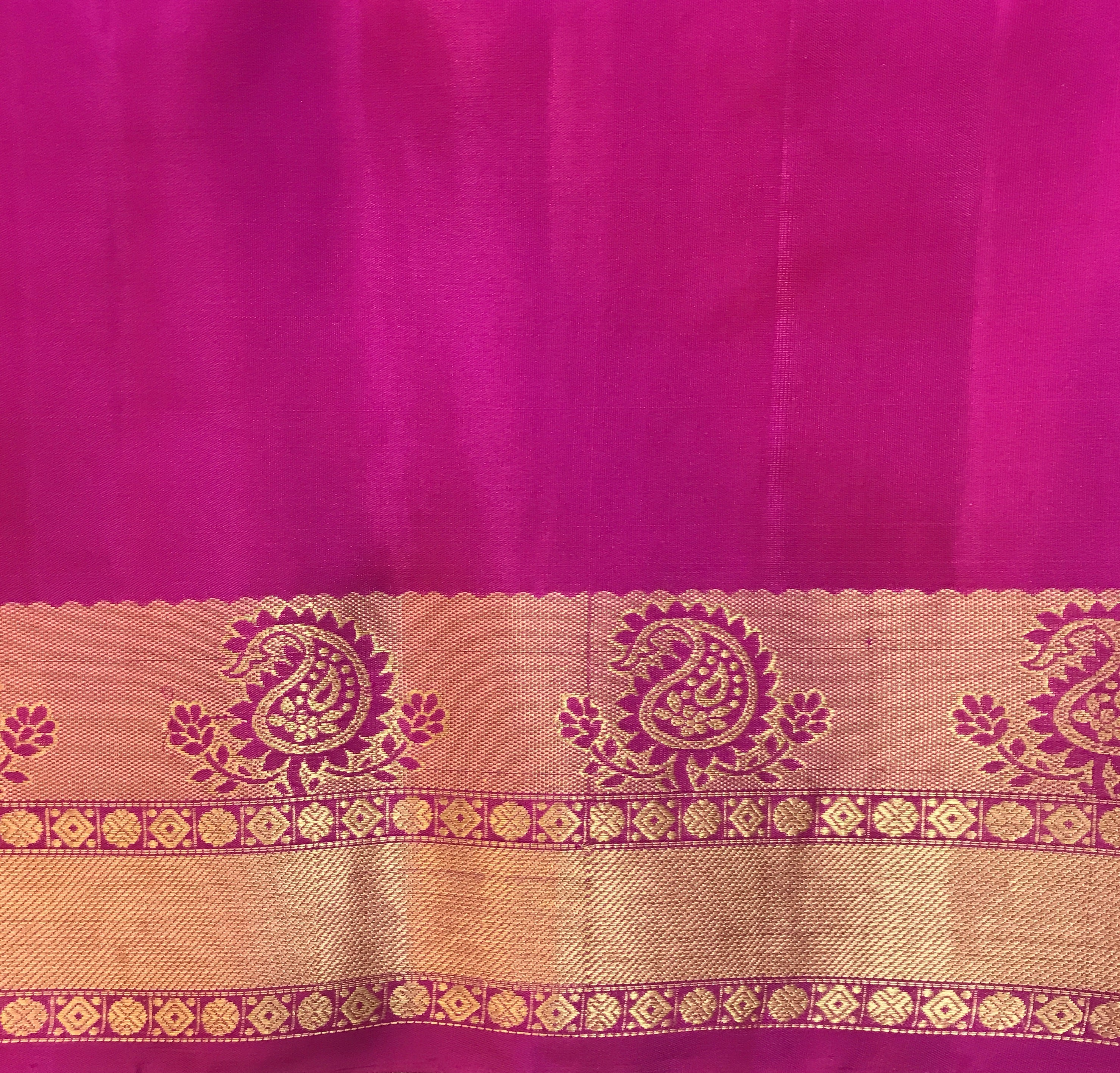 Blouse Colour: Contrast ( Pink with golden zari border )