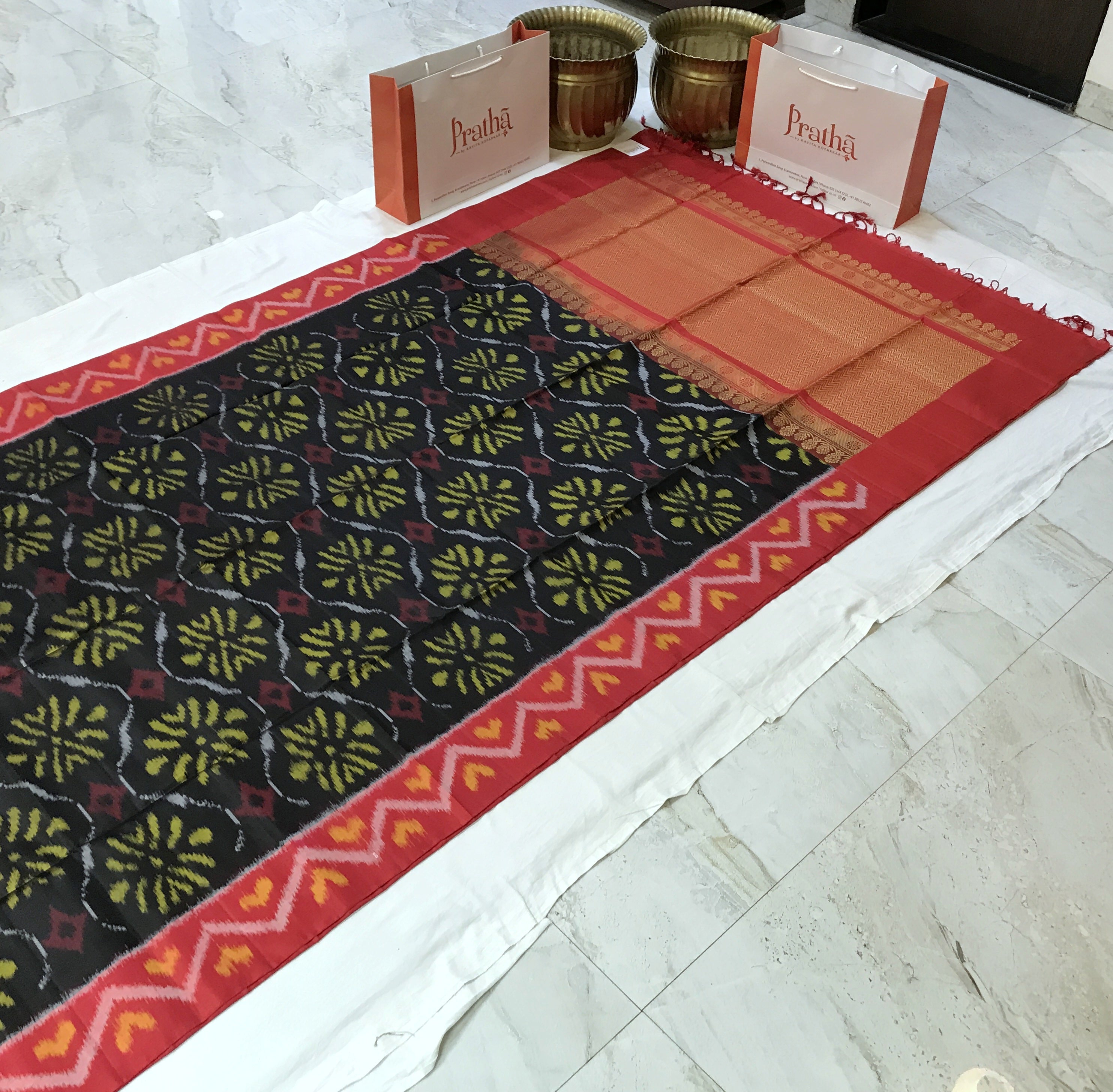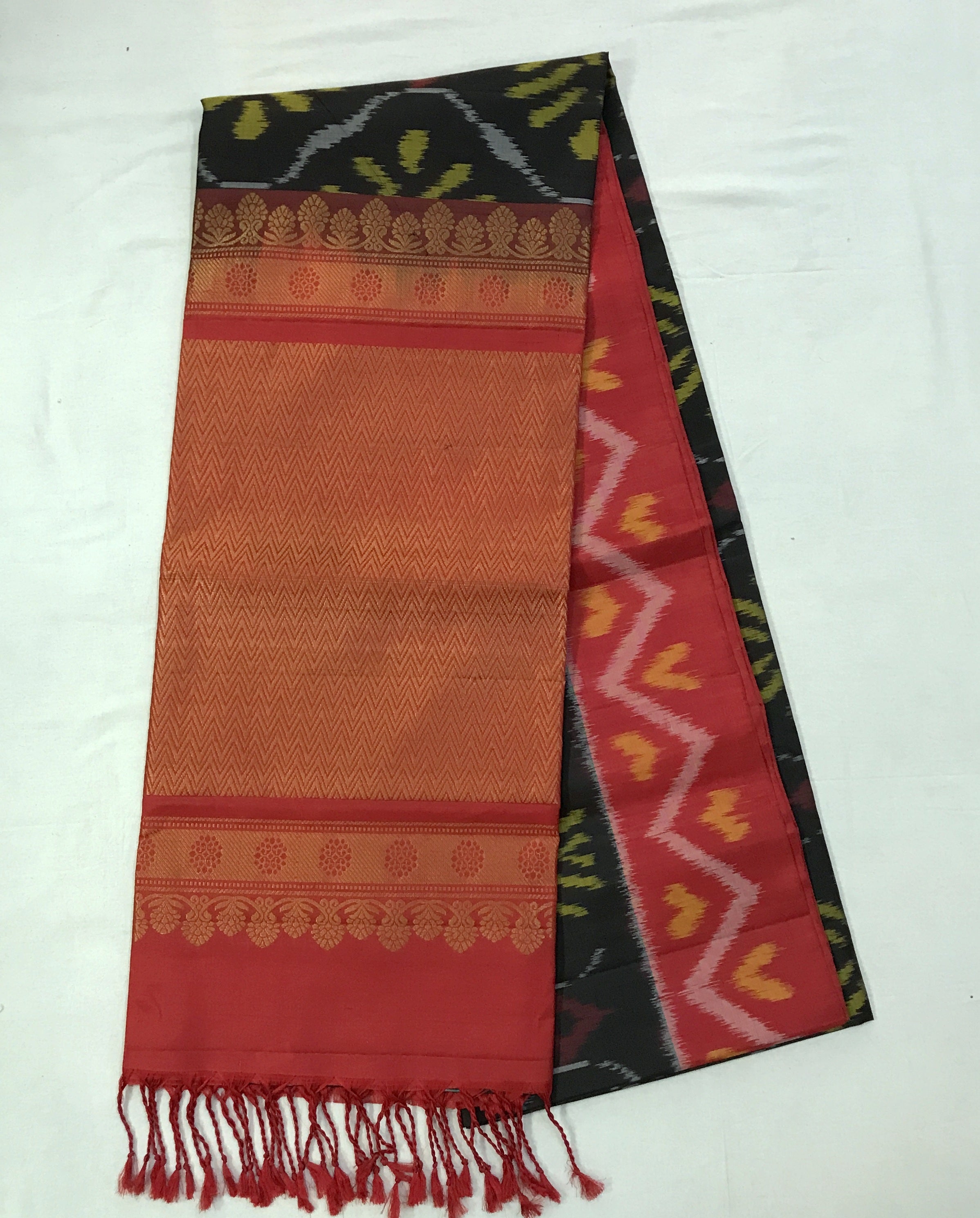 Black saree paired with red is a perfect mixture, this Soft Silk saree flaunts beautiful ikkat design with contrast ikkat design border and zari pallu give this weave a classy feel. Comfortable to wear and easy to drape this saree is look special. This black and red combination makes this saree a prefect casual or party wear weave.
