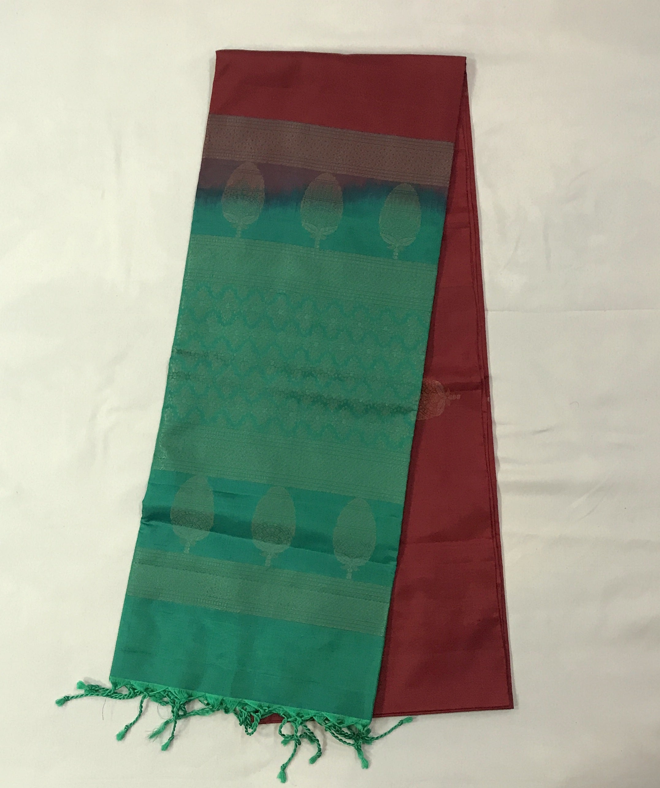 Blouse Colour: Contrast ( Plain green and saree comes with tassels )