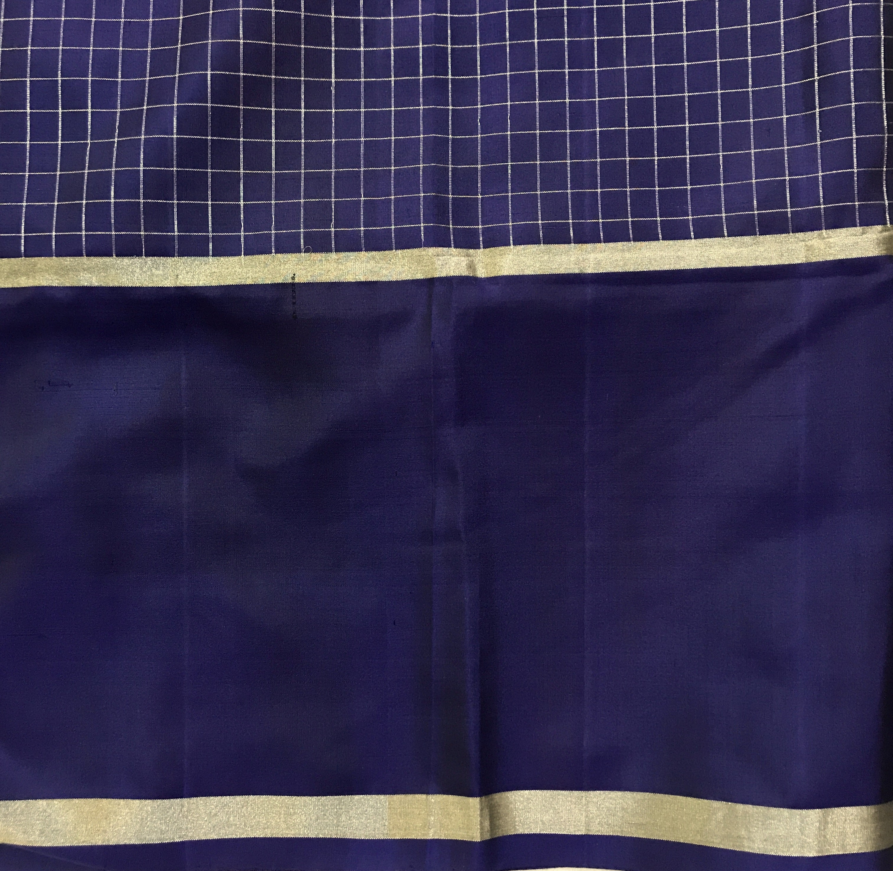 Blouse Colour: Contrast ( Blue with silver zari checks design and plain border )