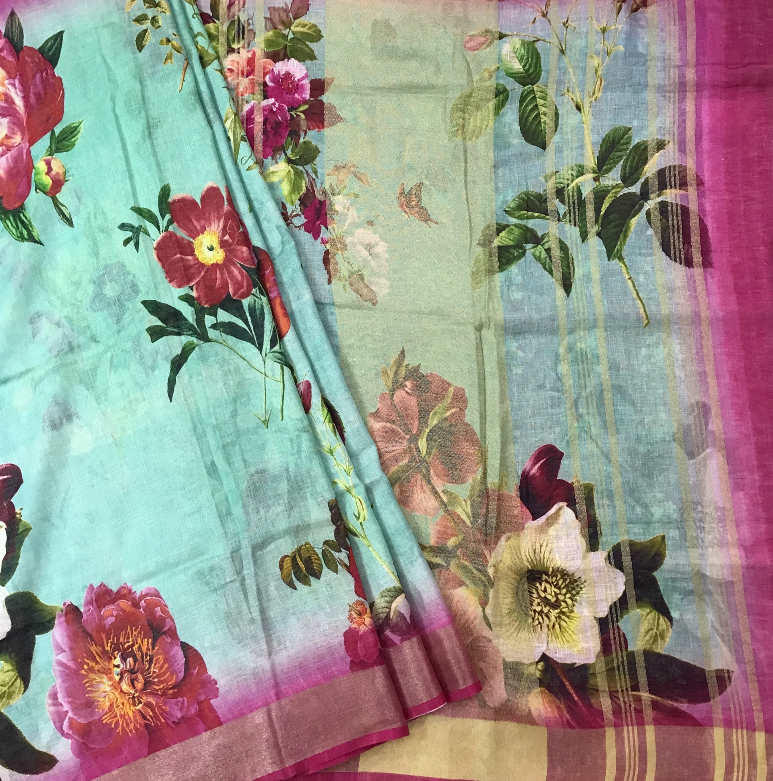 Some beautiful and elegant flower prints on linen, perfect breezy sarees for Summers! These trendy weaves are a perfect catch for hassle free looks, available in some truly fascinating colours.