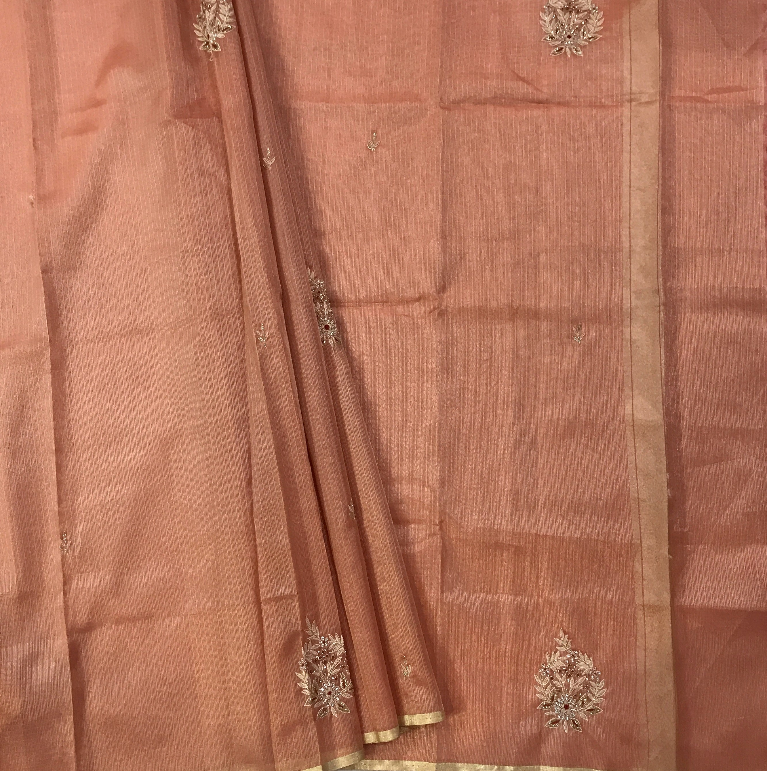Blouse Colour: Self ( Peach-Pink with butti design)