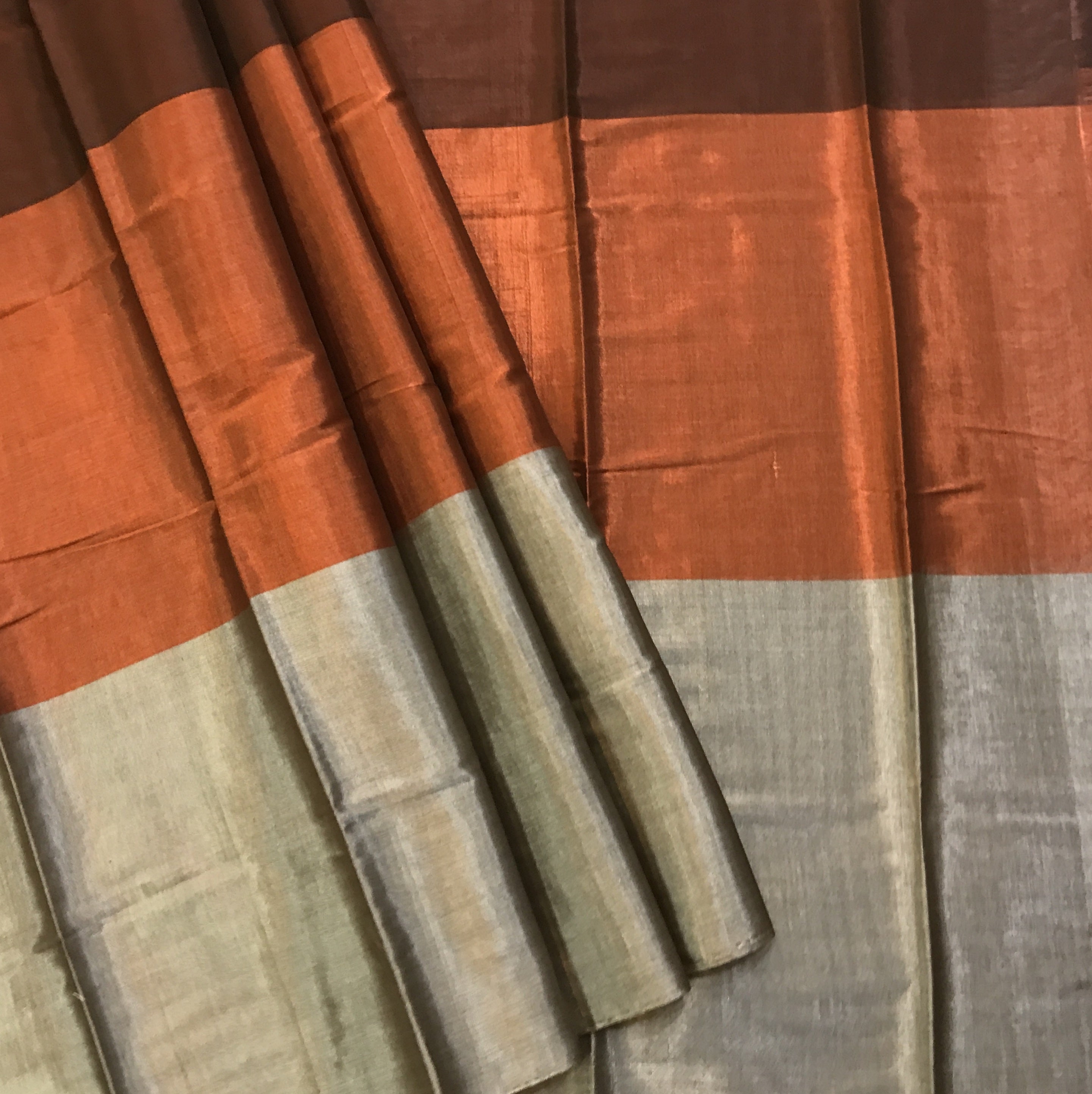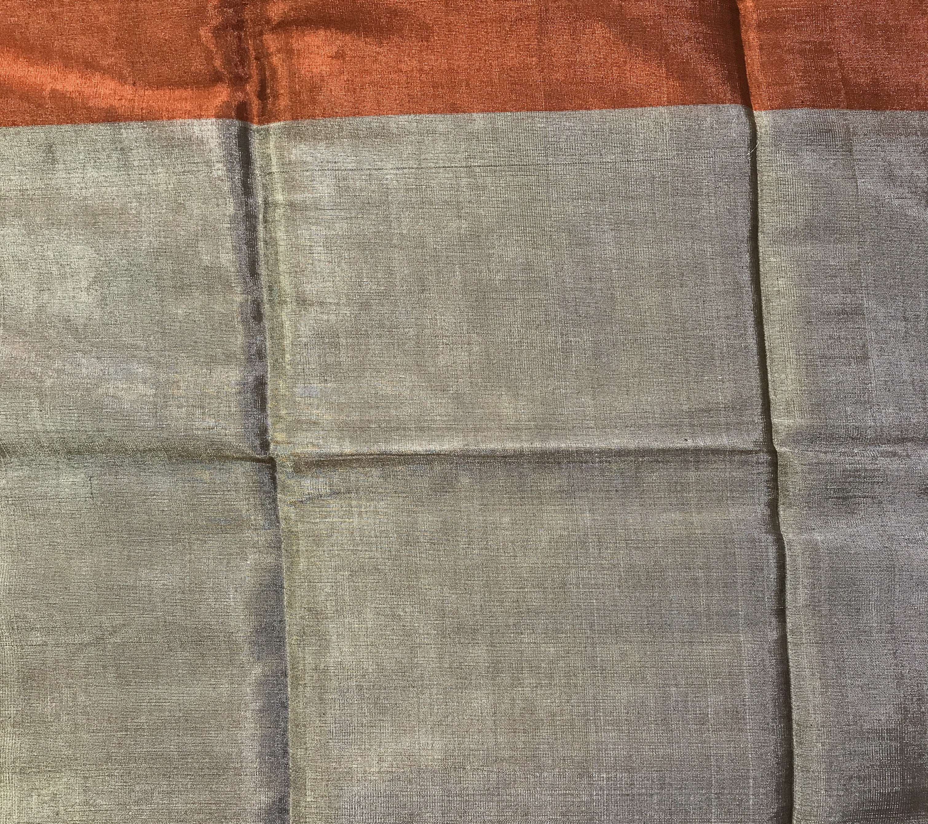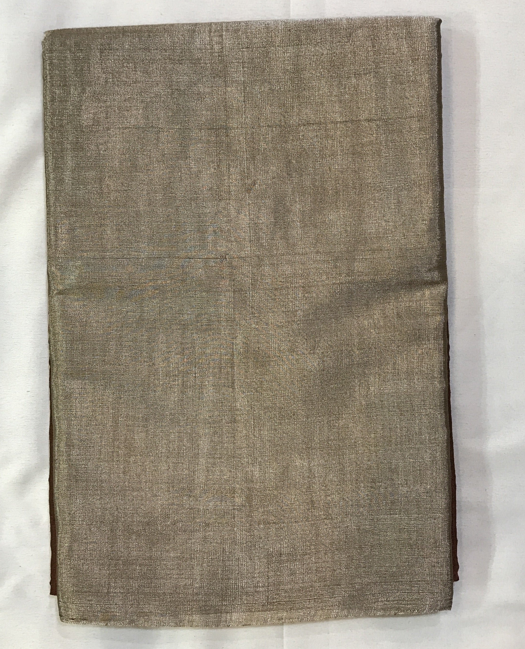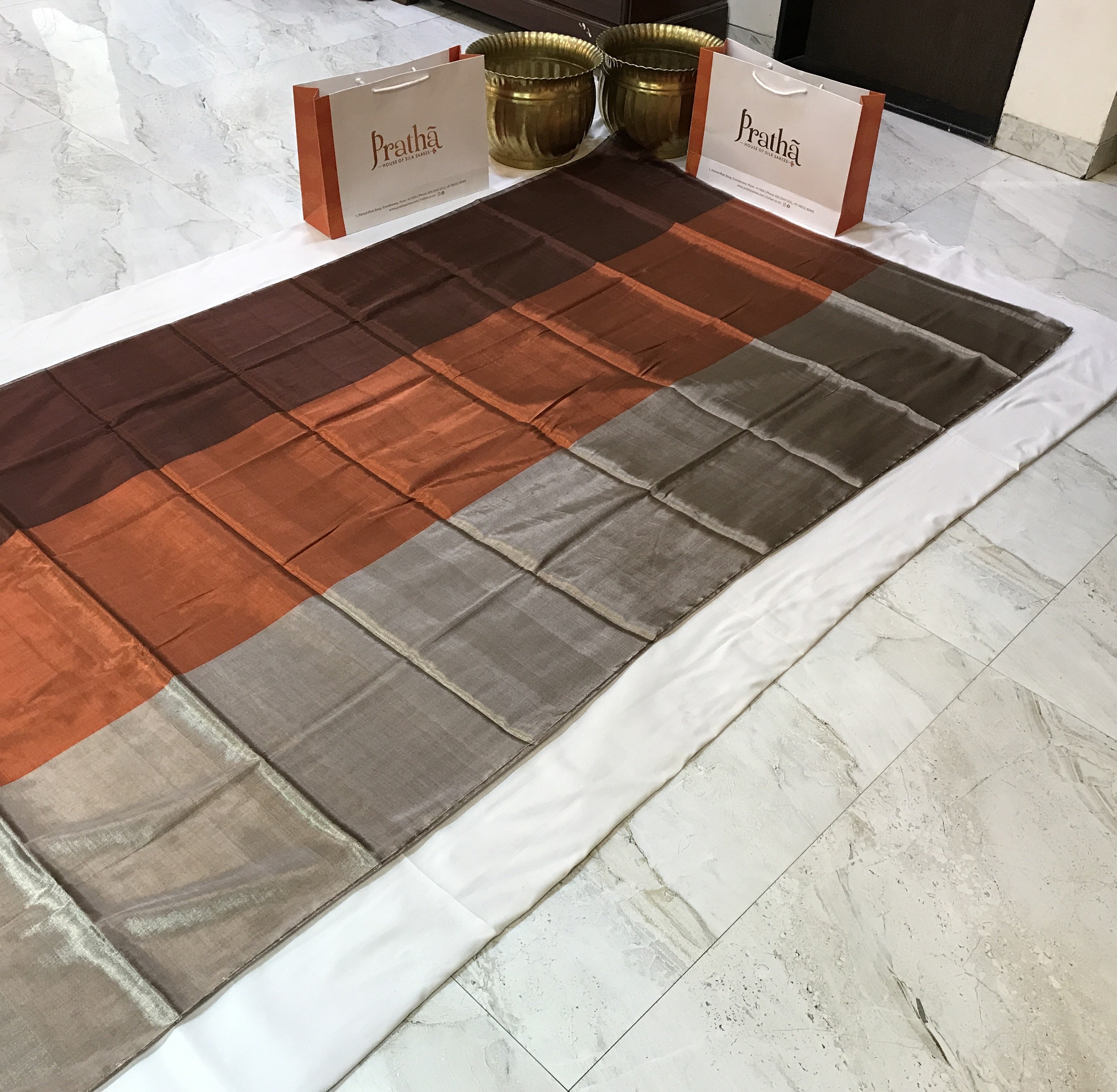 A beautiful cusp of designer Tissue and linen weaving, this saree design style is loved by so many! The sheen because off tissue and the lightness of linen both are pleasing to the eyes and comfortable to drape! The 'silver brown rust' shade of Linen, with bold and beautiful pallu looks casual and festive at the same time! This saree is light in weight and looks great at parties, corporate events, casual occasions as well as festive ones. This piece is a stunner and perfect for Summers.