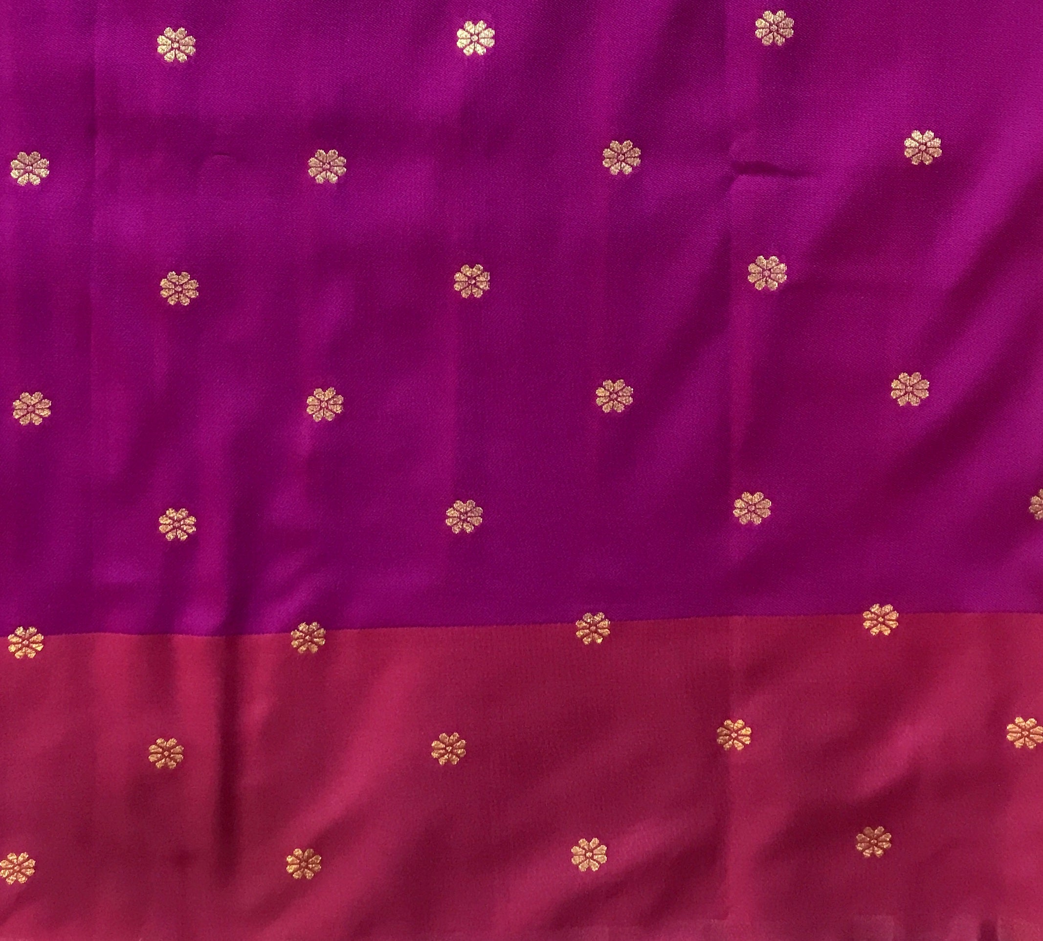 Blouse Colour : Contrast (Magenta with butti design and zari border)
