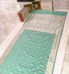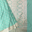 Bold and stylish, this beautiful blend of blue and green malai silk saree features eye-catching, uniquely shaped buttis spread across the body. Paired with a designer border, it blends traditional charm with a modern twist—perfect for standout festive looks.