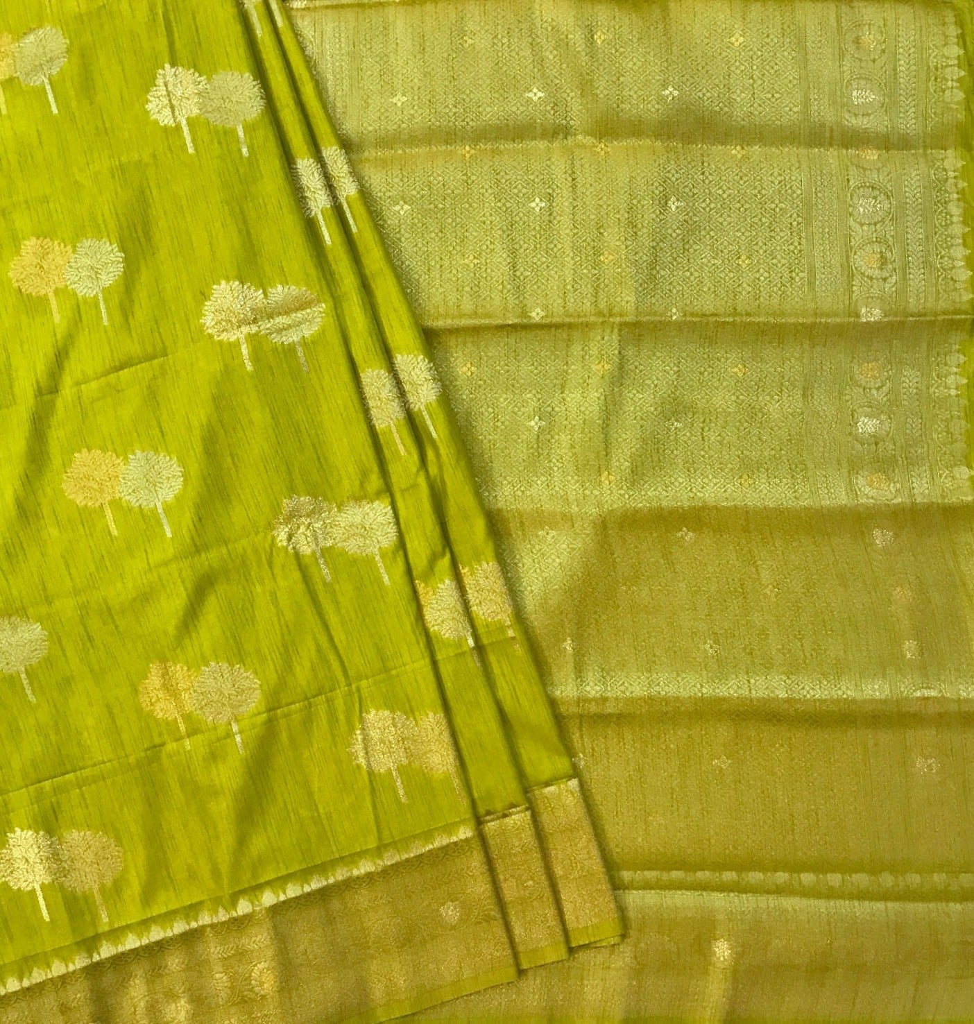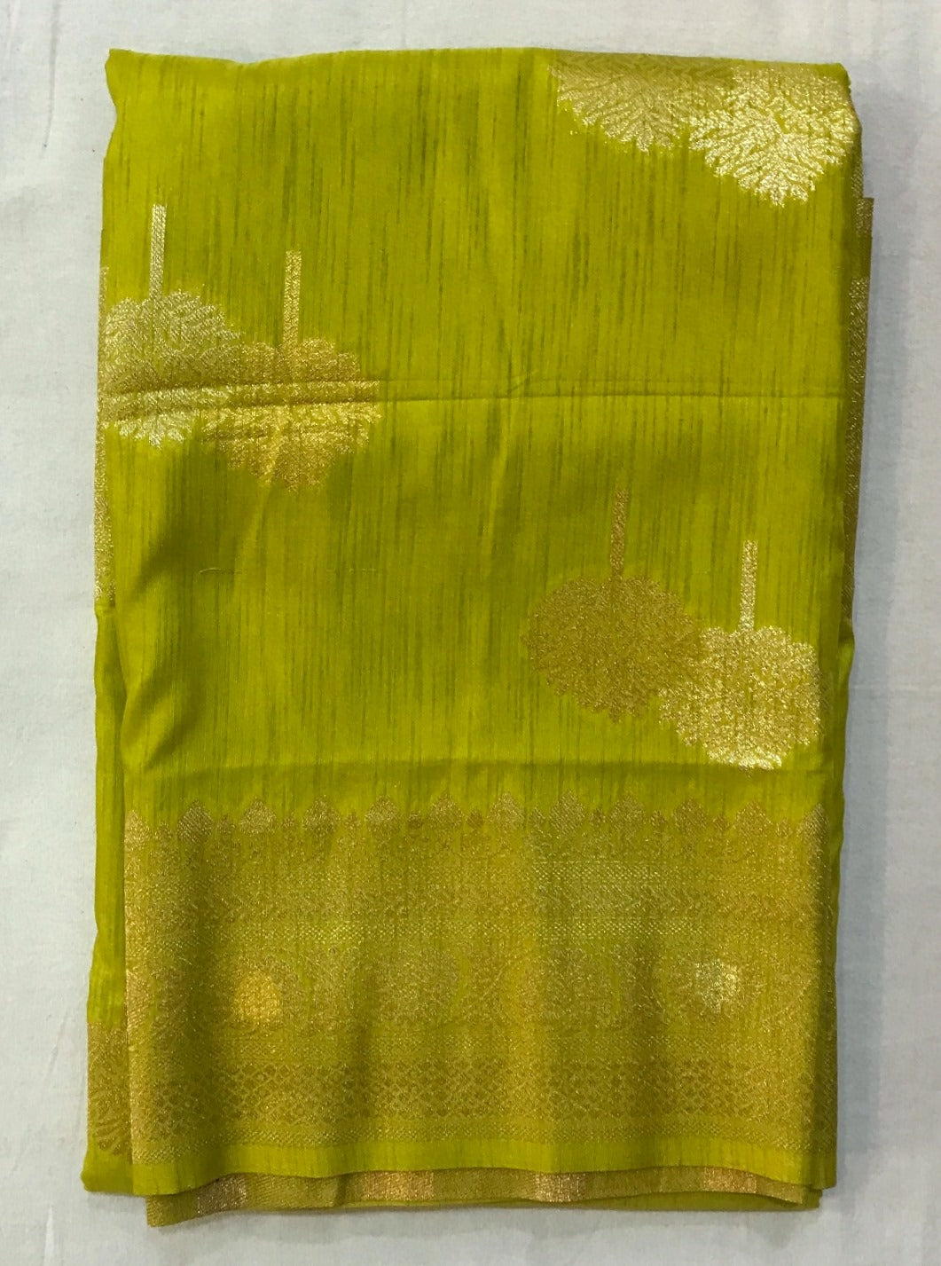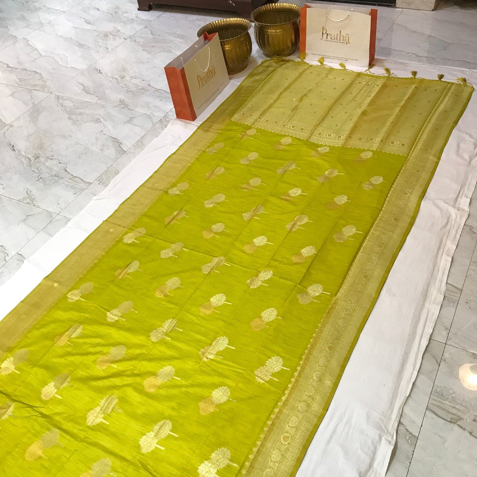 A trendy silk saree in green coloured, soft at feel and easy to drape. Intricate butta and delicate border, this saree type is one of Pratha's fastest selling ones! Adorn these lovely dola silk sarees at any special occasion and look your best! These sarees make for perfect gifts for your loved ones.