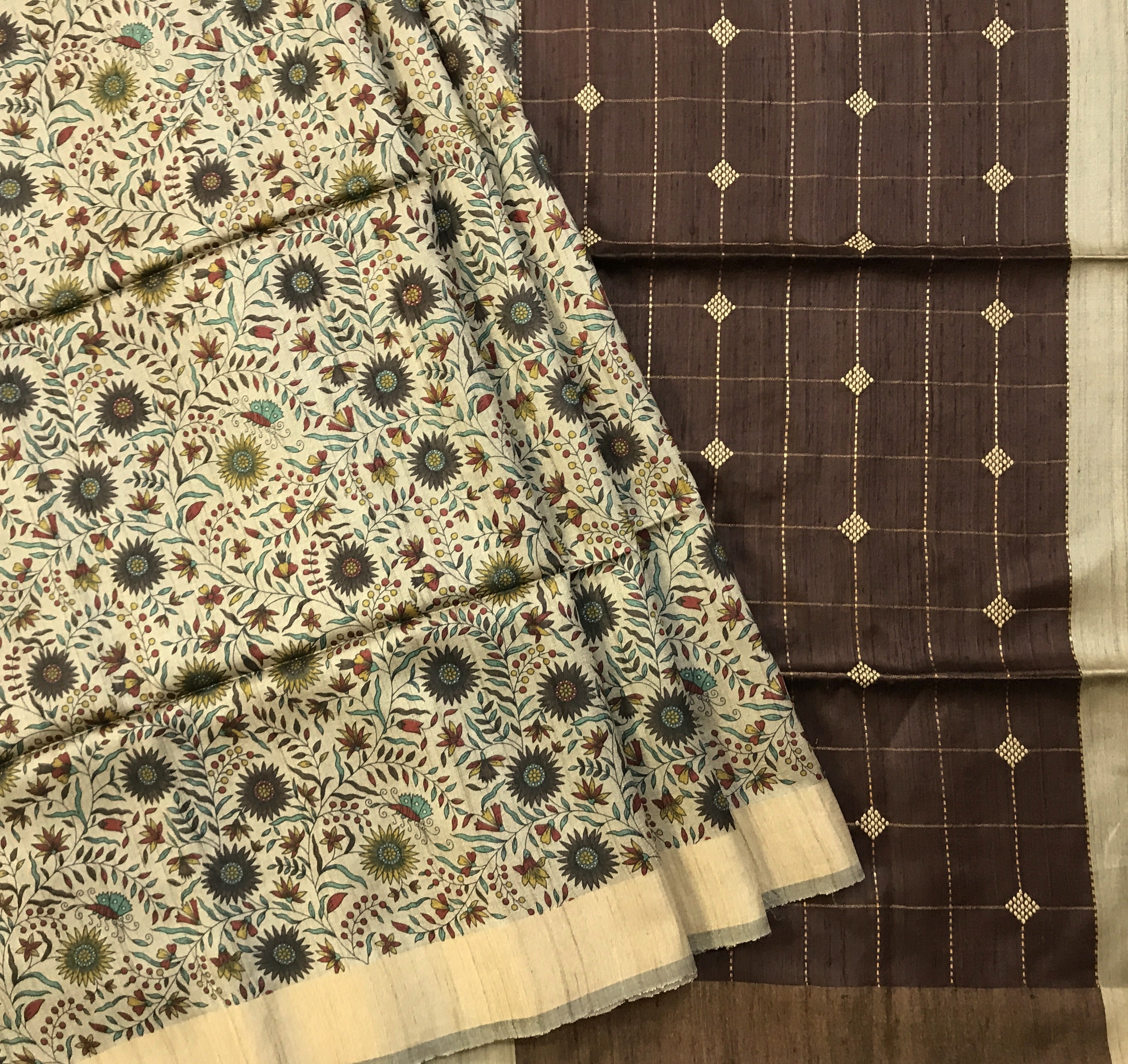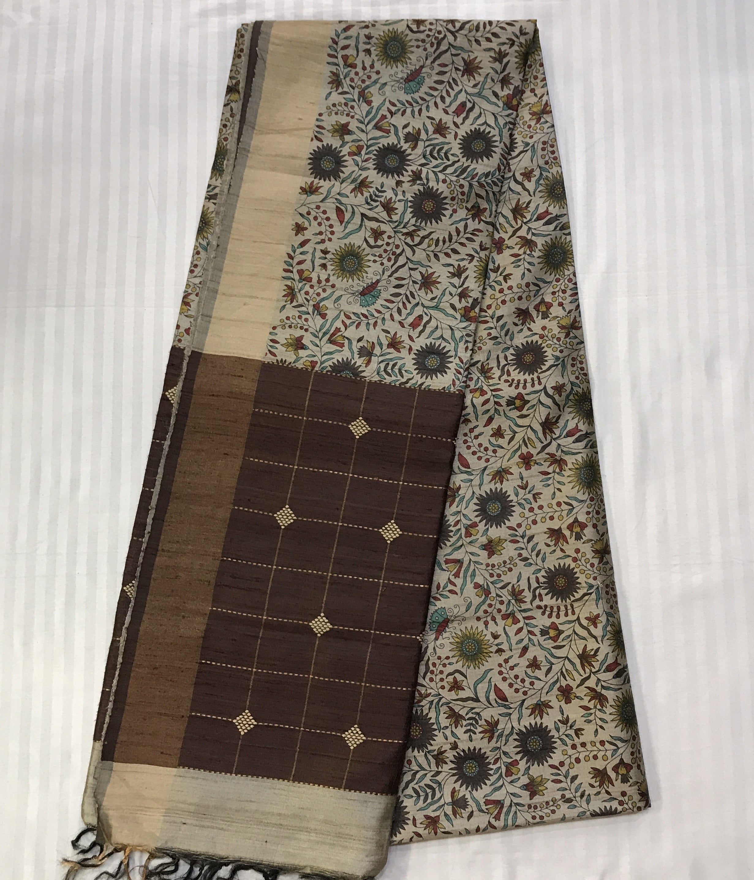Blouse Colour: Contrast ( brown colour with zari butta )