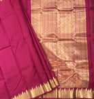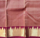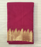 A beautiful shade of pink in traditional powerloom Kanjeevaram with a golden zari ( intricate design ) border, this is a magnificent saree! The unique colour makes it stand out. This saree is perfect for day as well as evening.