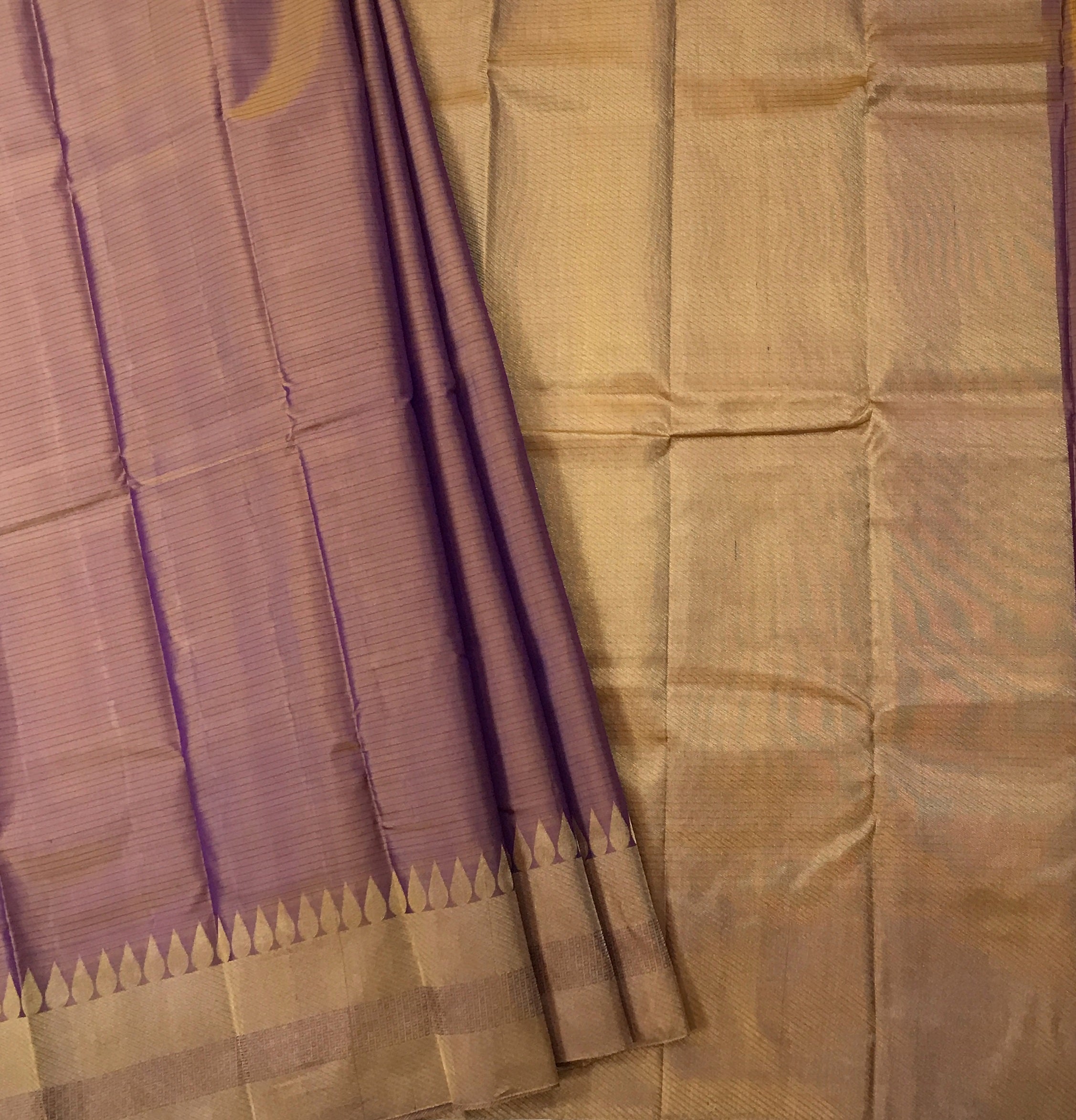 This elegant pink Kanchi silk saree with a striking golden zari border exudes sophistication. Whether you're attending a casual gathering, a party, or a small function, this saree is perfect for making a stylish statement wherever you go.