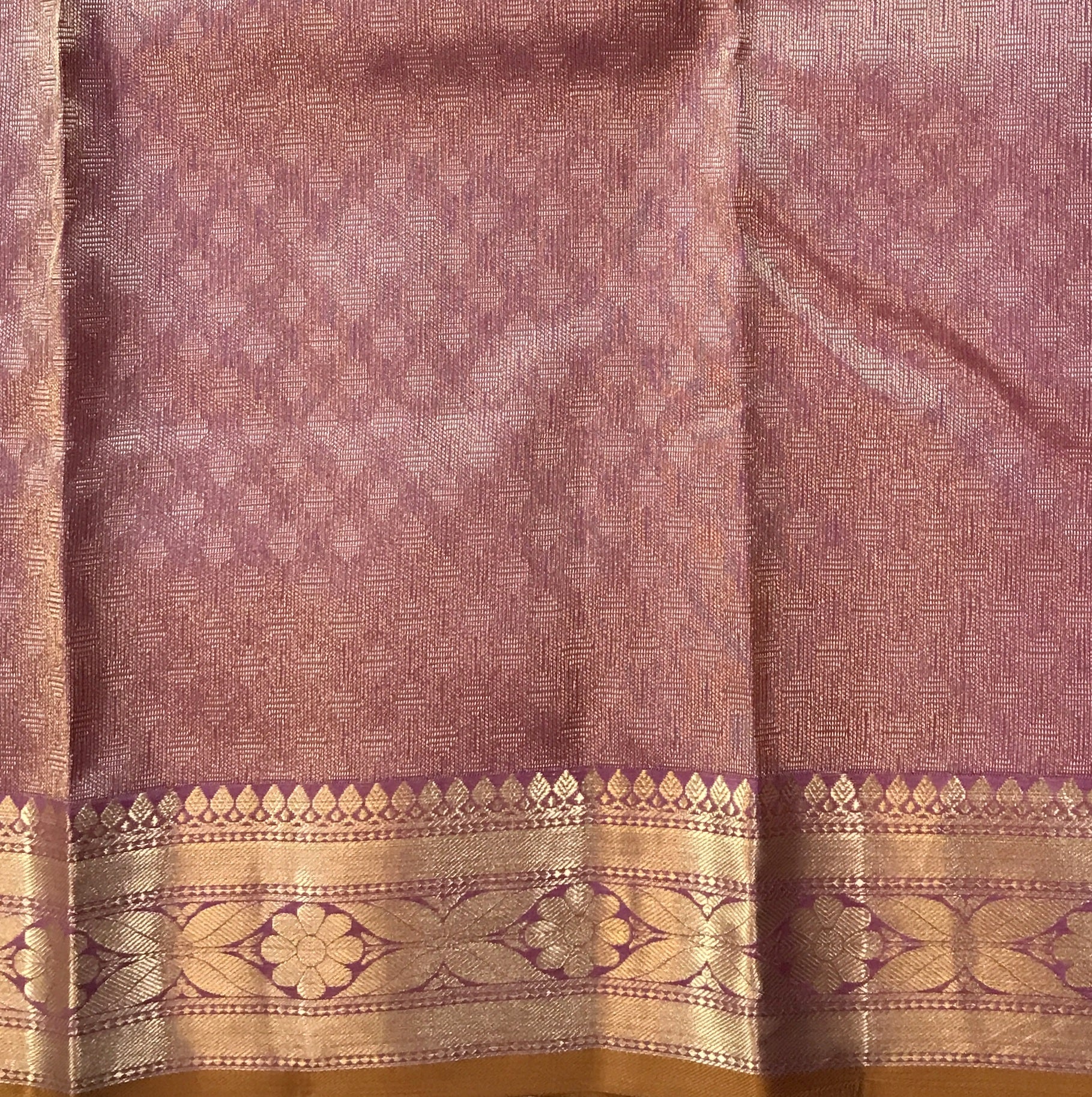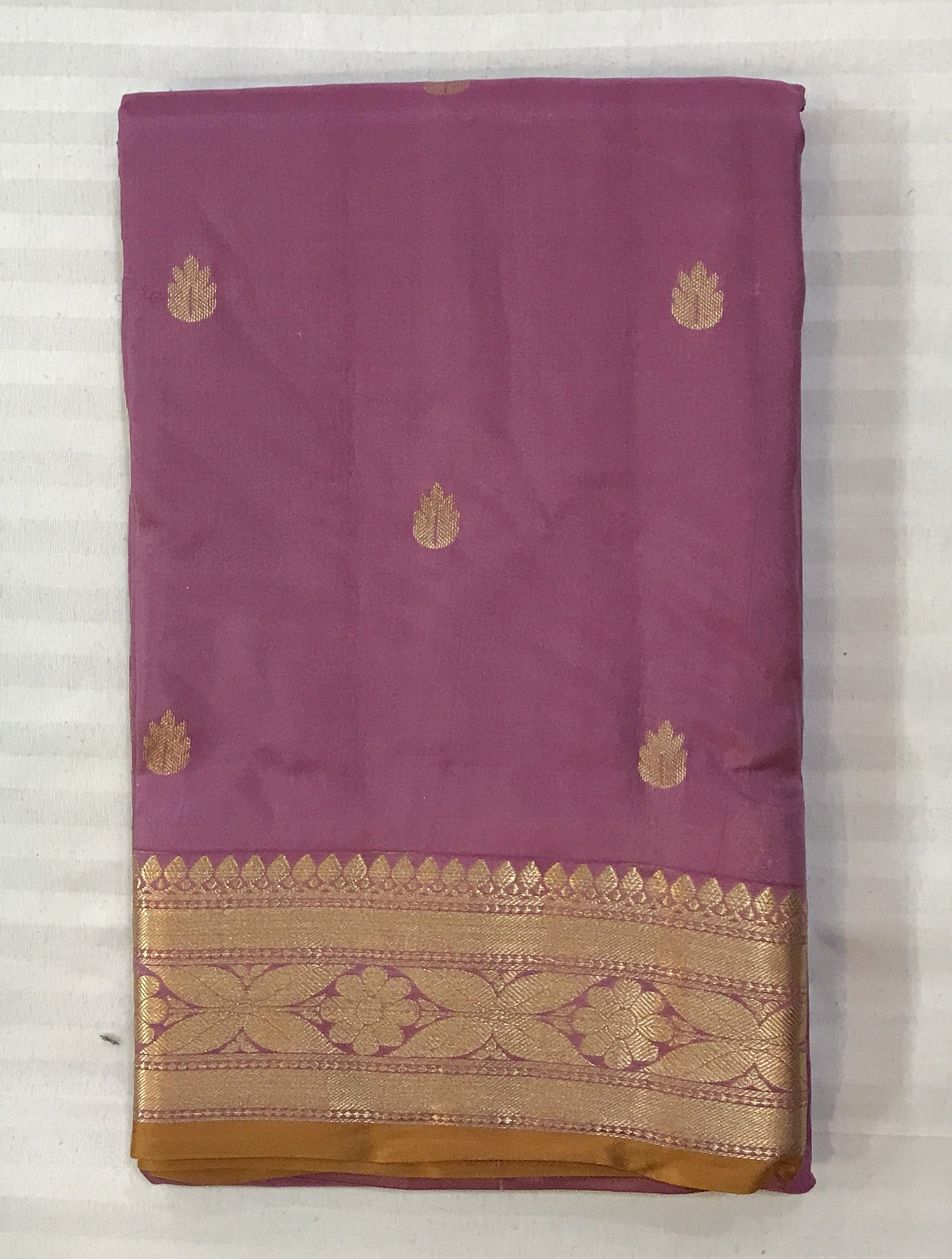A very beautiful pink Kanjeevaram with very beautiful golden zari border looks ravishing. May you be casual or at a party, or a small function, you can flaunt it at anywhere.