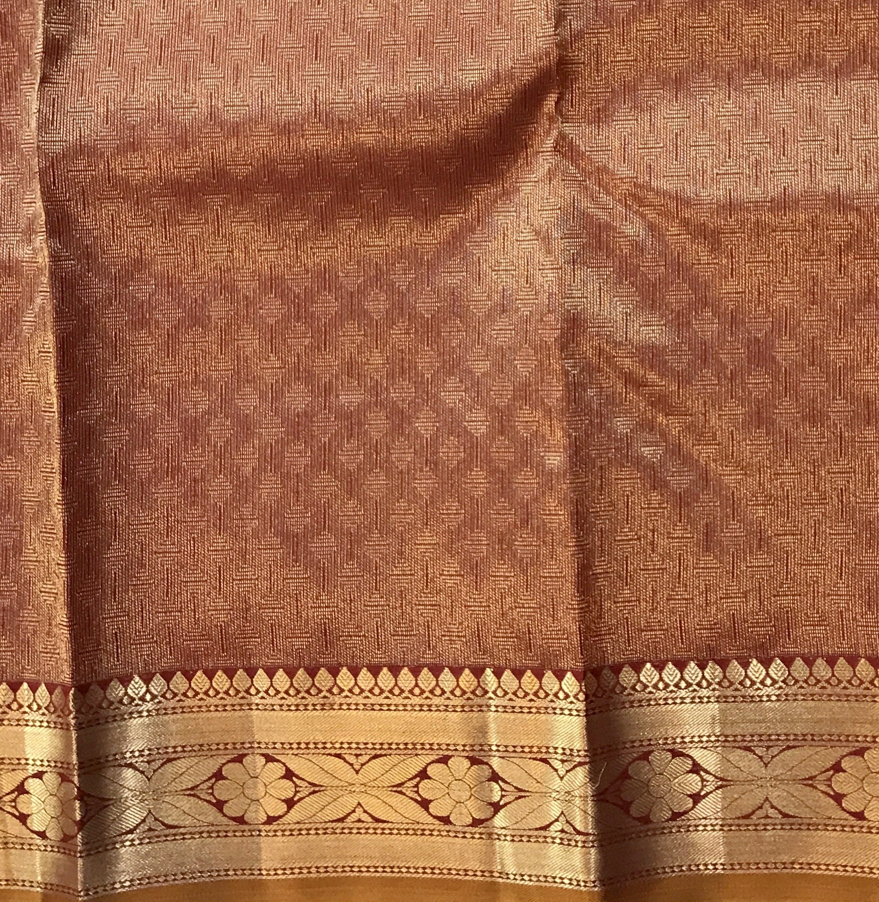 Blouse: ( Self with brocade design and golden zari border )