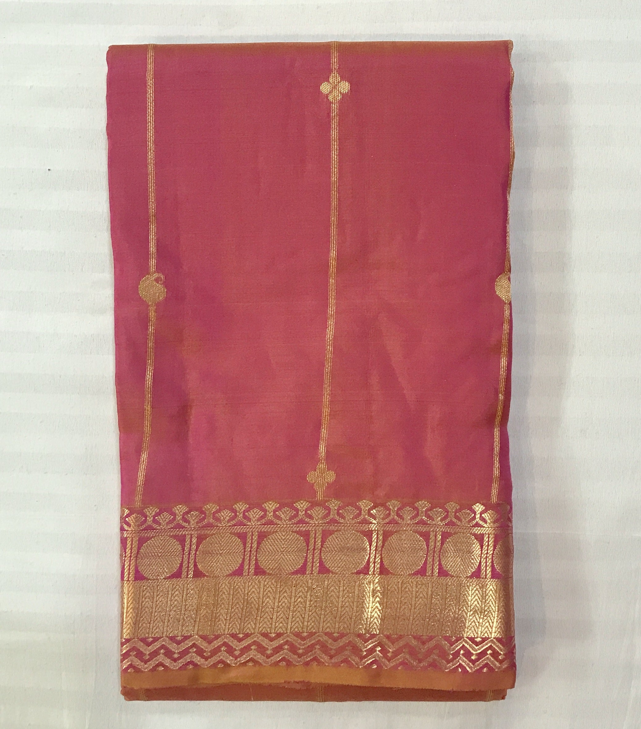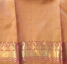 A very beautiful peach-pink Kanjeevaram with very beautiful golden zari border looks ravishing. May you be casual or at a party, or a small function, you can flaunt it at anywhere.