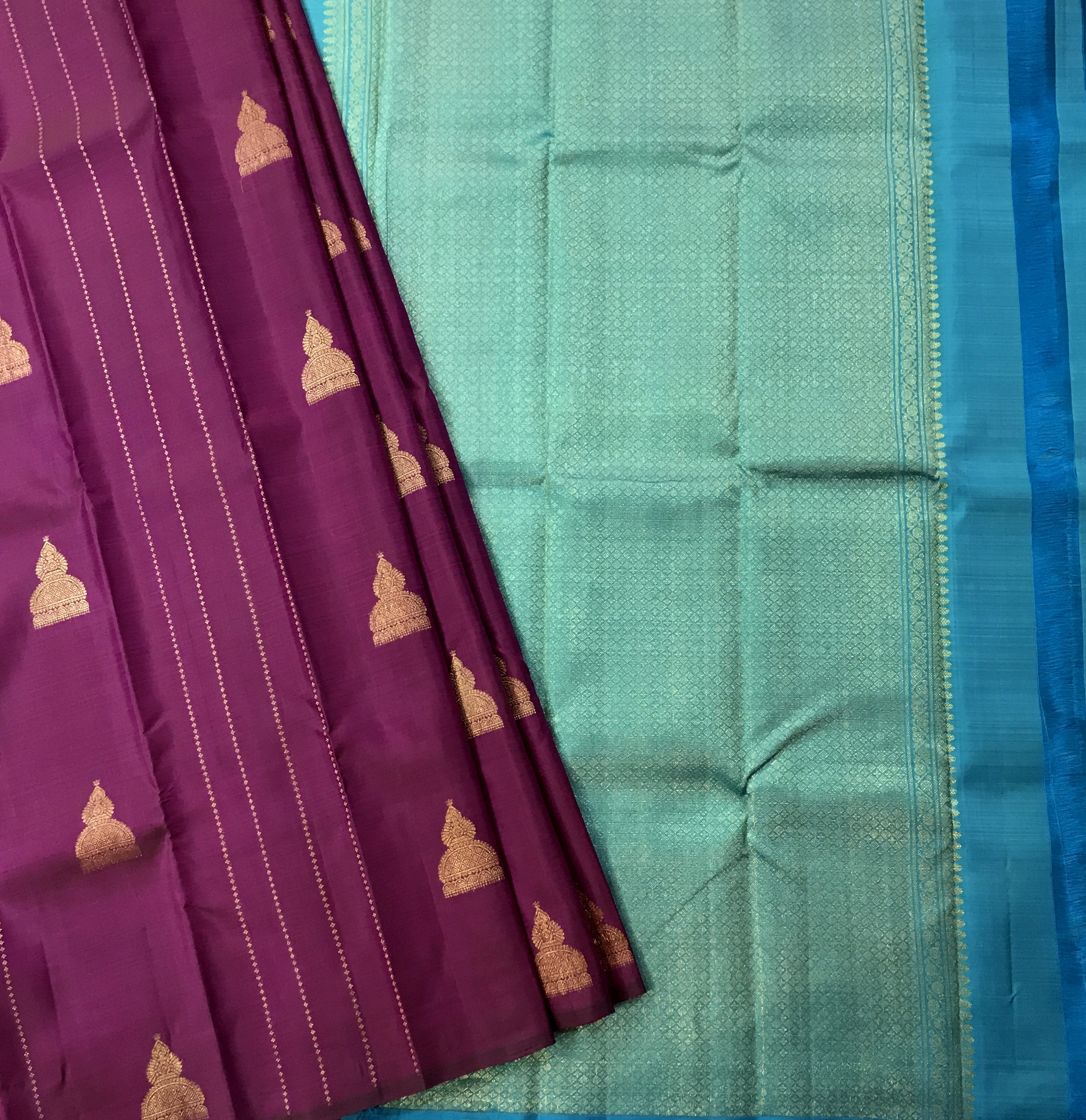 Blouse Colour : Contrast ( Plain Blue with zari line design )