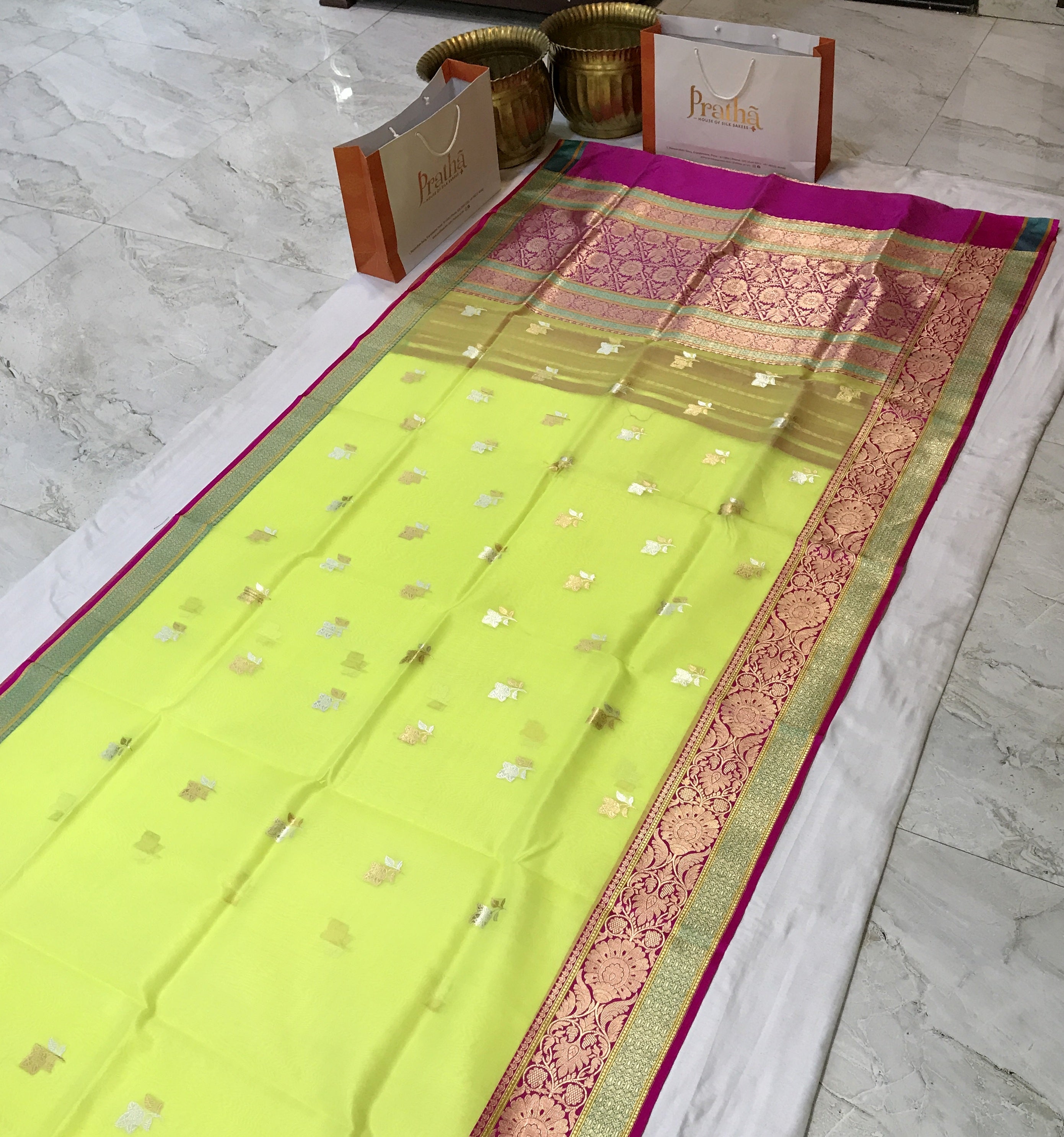 Note: Since these sarees are handmade, there may be slight variations in the design. We believe that these only add to each saree’s unique and inimitable character.