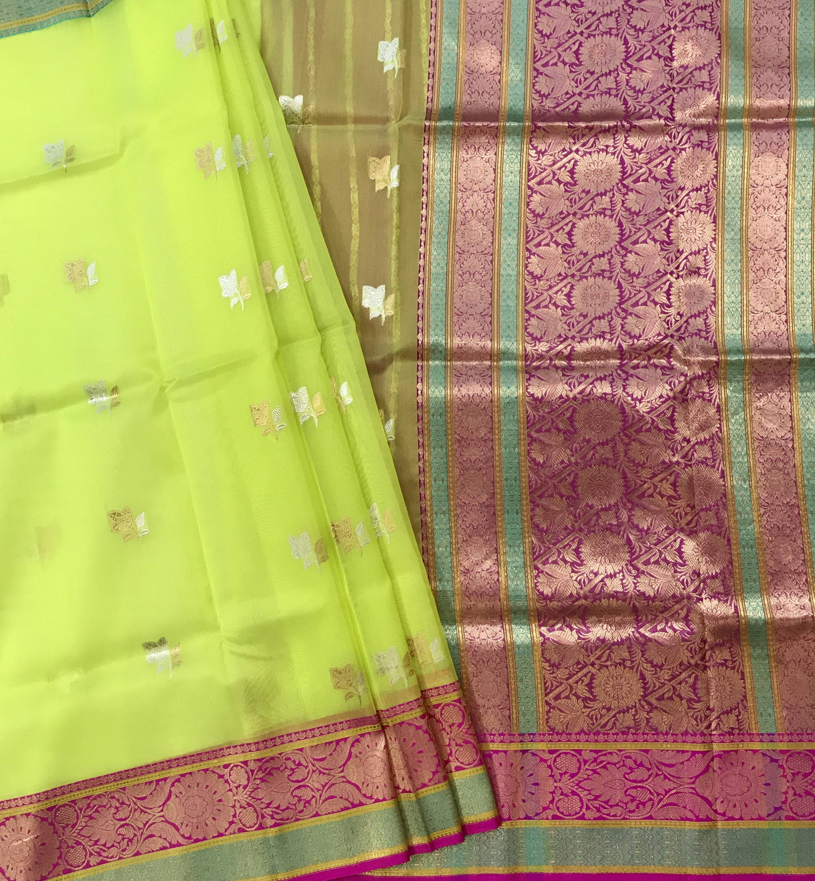 Blouse Colour: Contrast (  Magenta with zari butti  )
