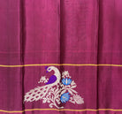 This purplish blue designer border Gadhwal' reflects the weaver's dedication and hard work. The delicate golden, silver peacock butti looks stylish and gives this saree a vibrant and festive vibe The intricates borders, that is, a multicolor designer peacock border with beautiful meenakari, look distinctive and complementing each other. The beautiful shade of grey goes so well with the magenta golden zari pallu!