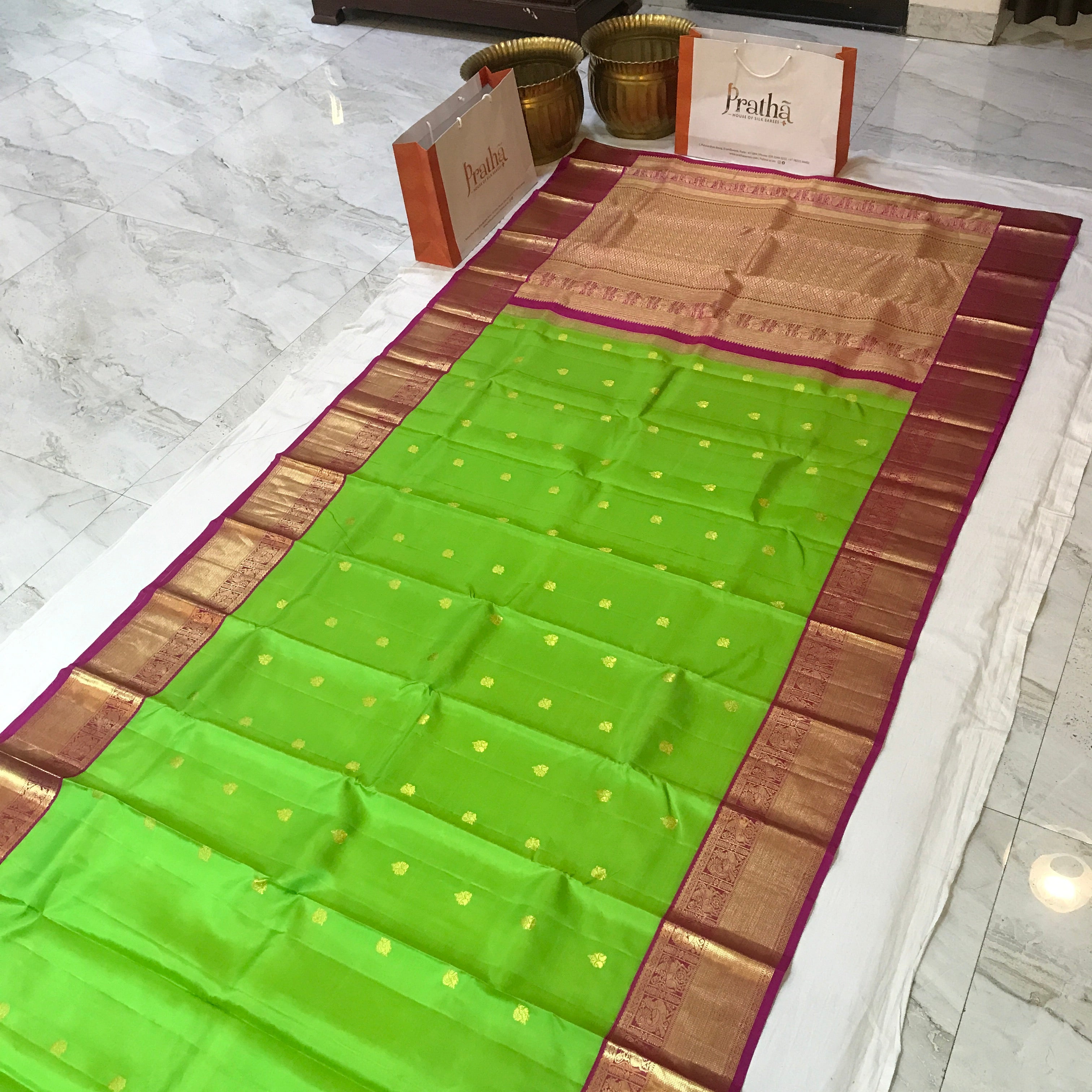 Note: Since these sarees are handmade, there may be slight variations in the design. We believe that these only add to each saree’s unique and inimitable character.
